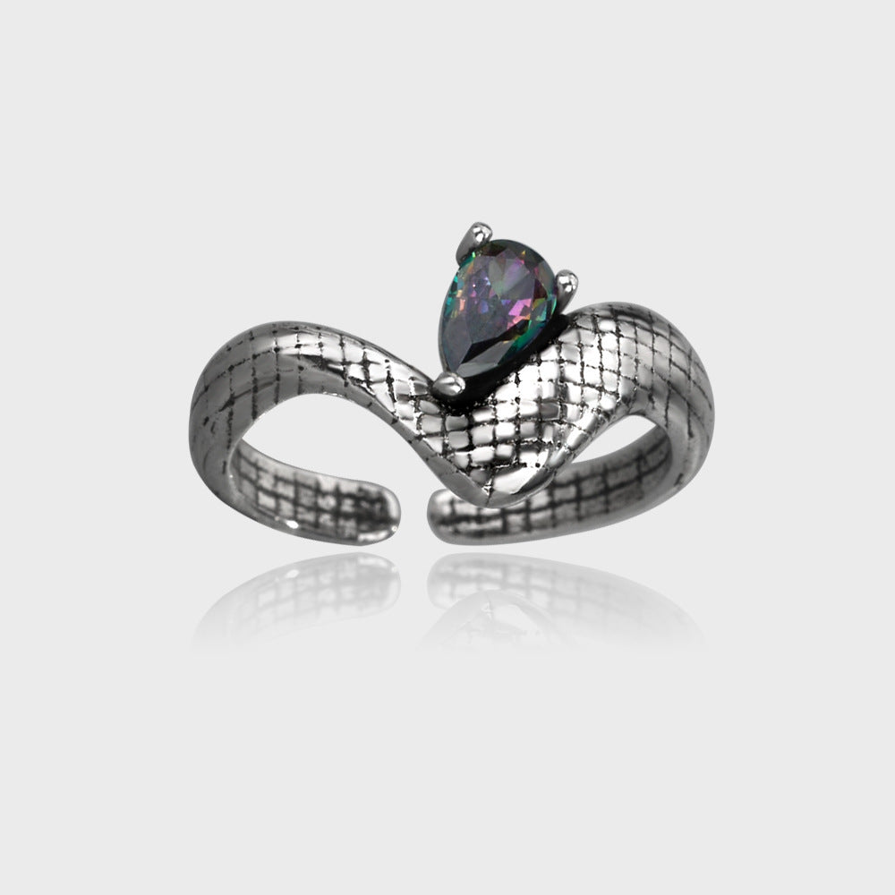 Womens Retro Snake Ring Colorful Zircon Inlaid Copper Gold Plated Adjustable Opening Statement Jewelry Or Gift