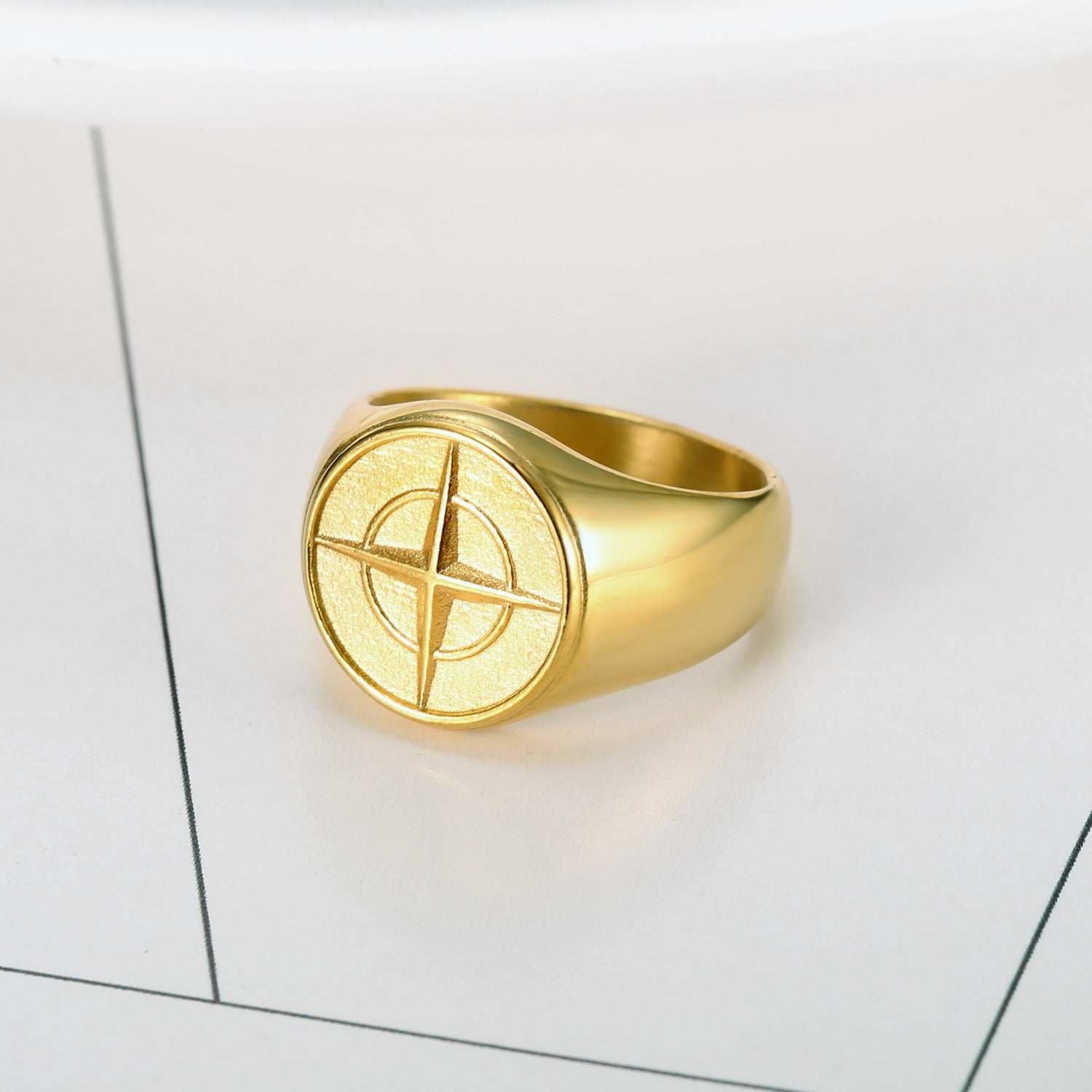Unisex Stainless Steel Ring with Compass Nautical Design and Boat Anchor Shape for Men and Women Fashion Jewelry