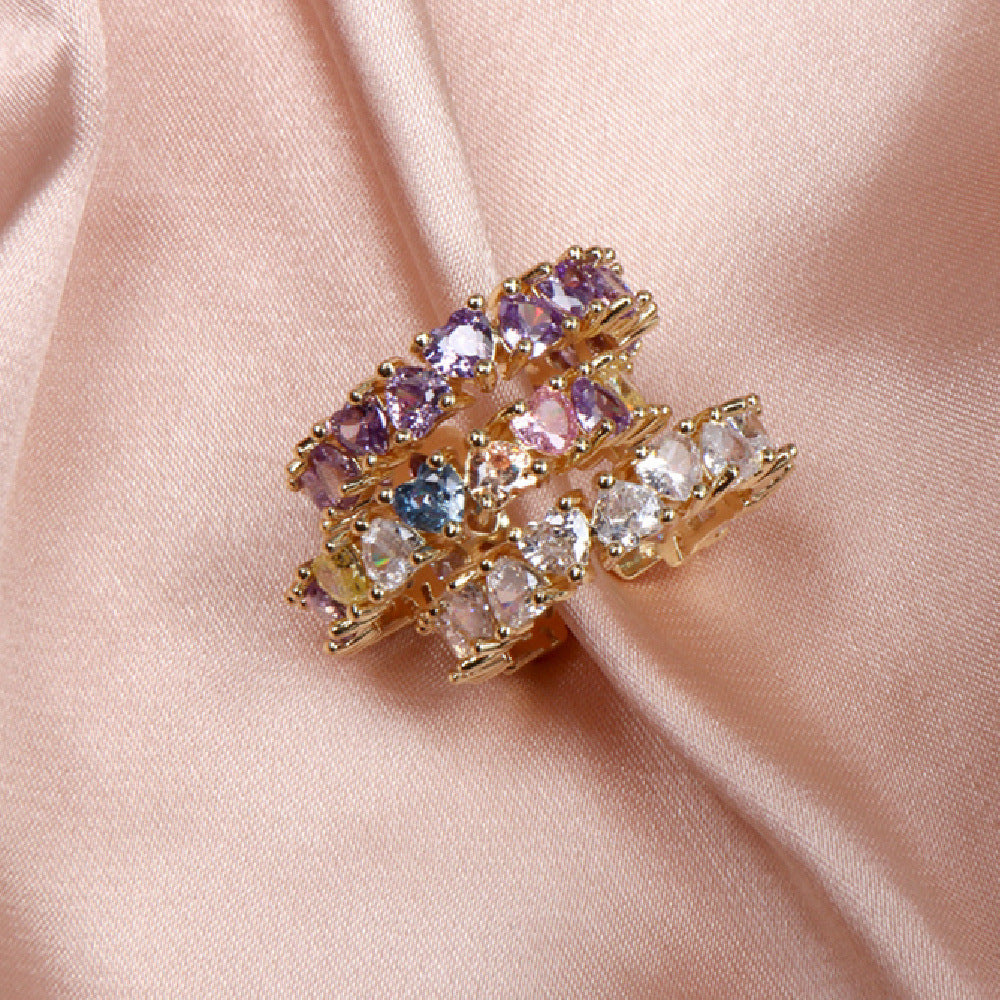Womens Heart Ring With Color Zirconium Inlaid Copper Adjustable Opening For Festivals And Gifts Europe America