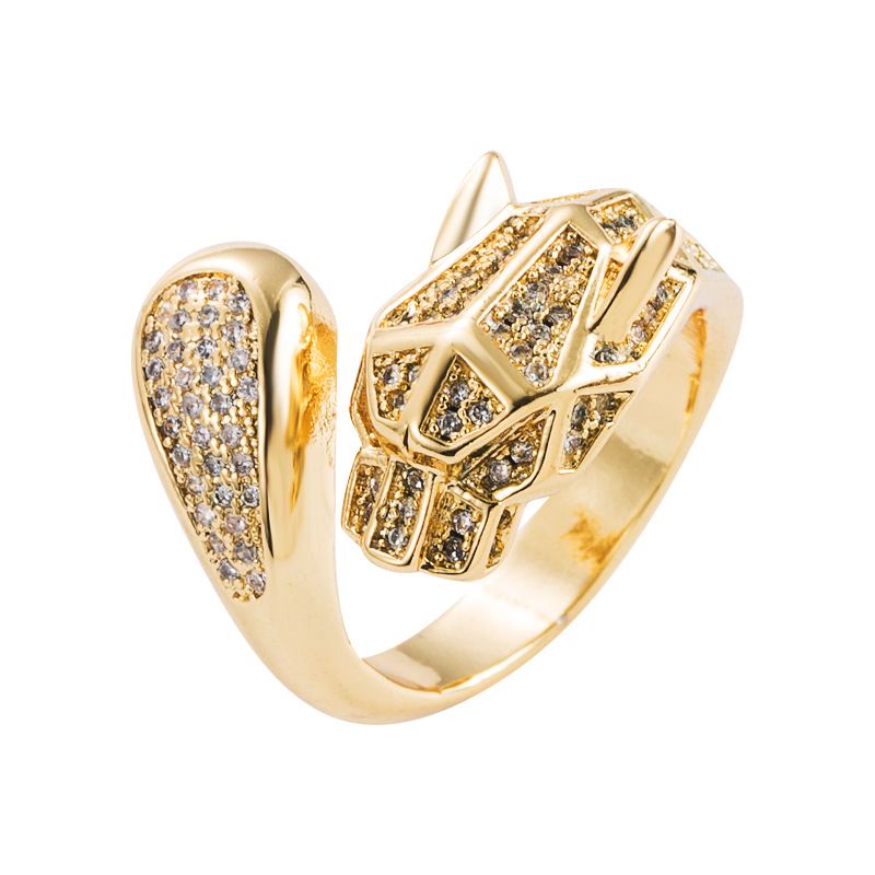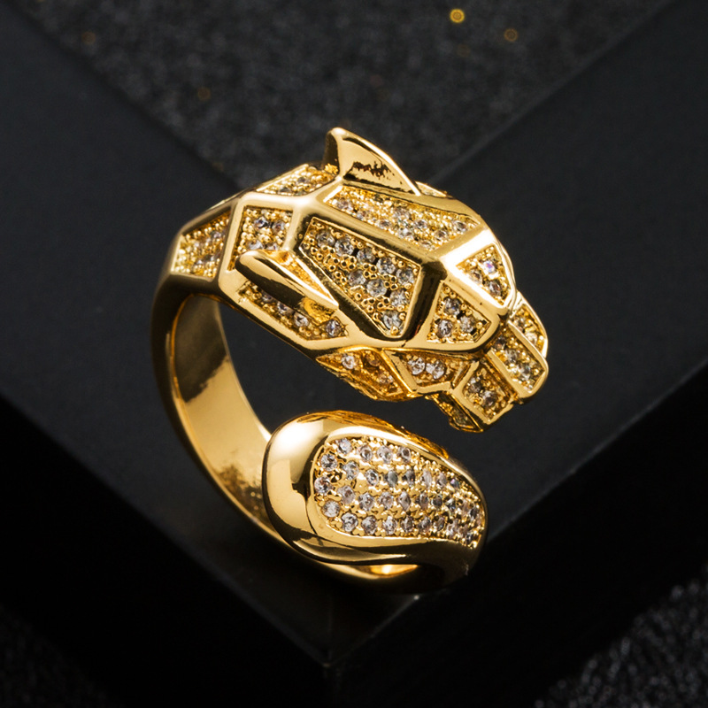 Copper Micro-set Zircon Leopard Head Ring High-end Trend Light Luxury