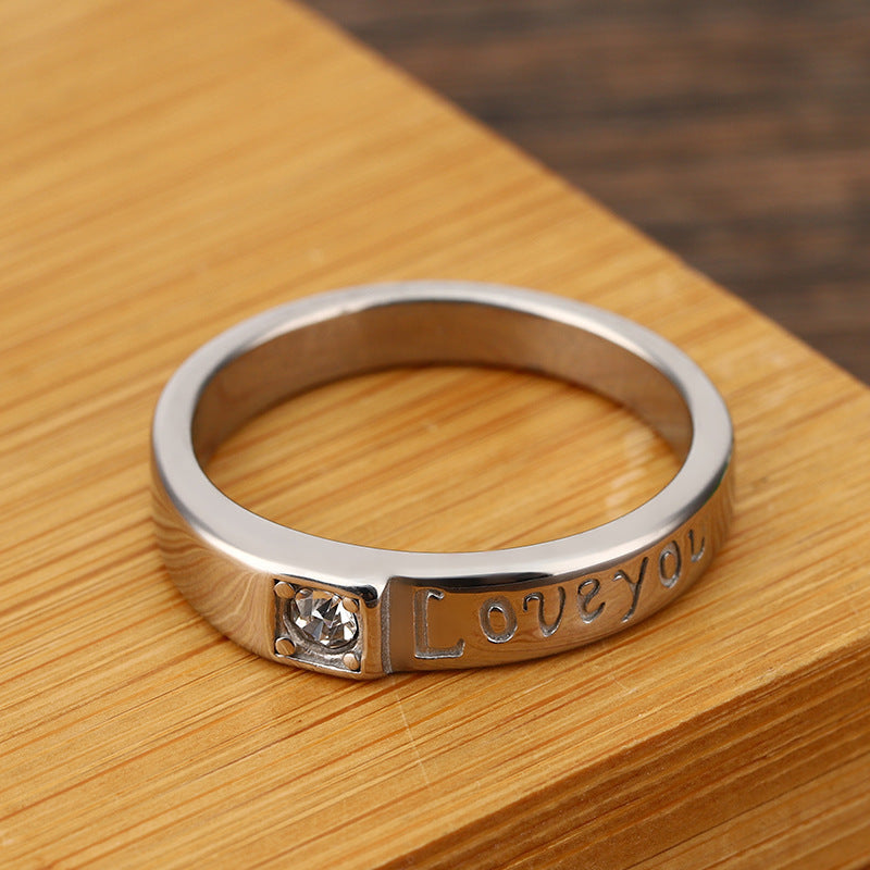 Unisex Stainless Steel Rings For Couples With Zircon Geometry Design Anniversary Gift Promise Rings Black Silver