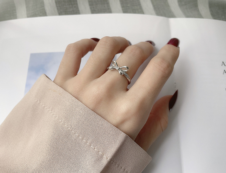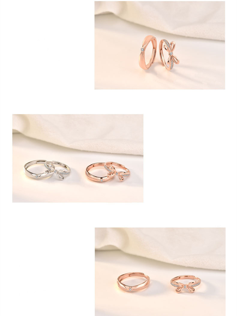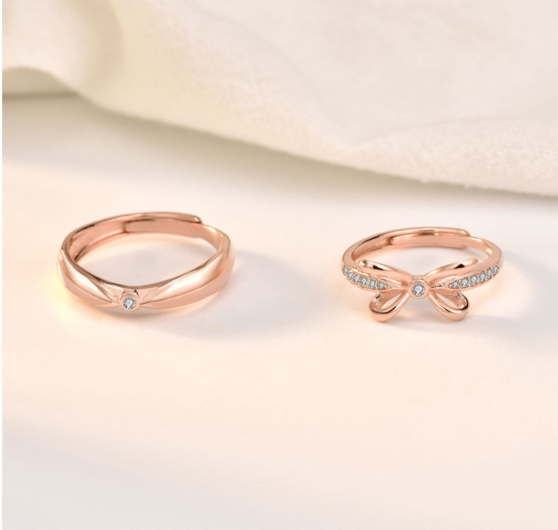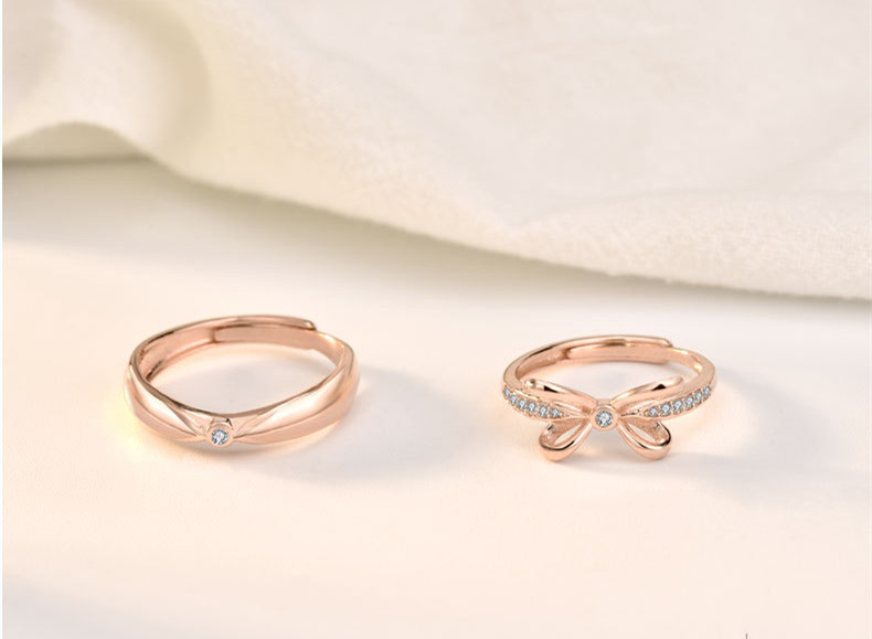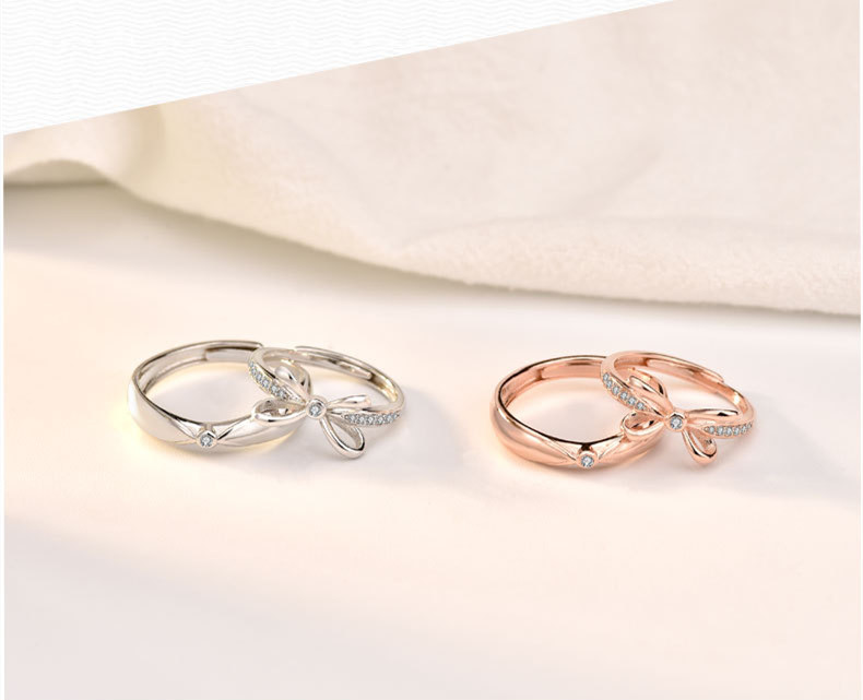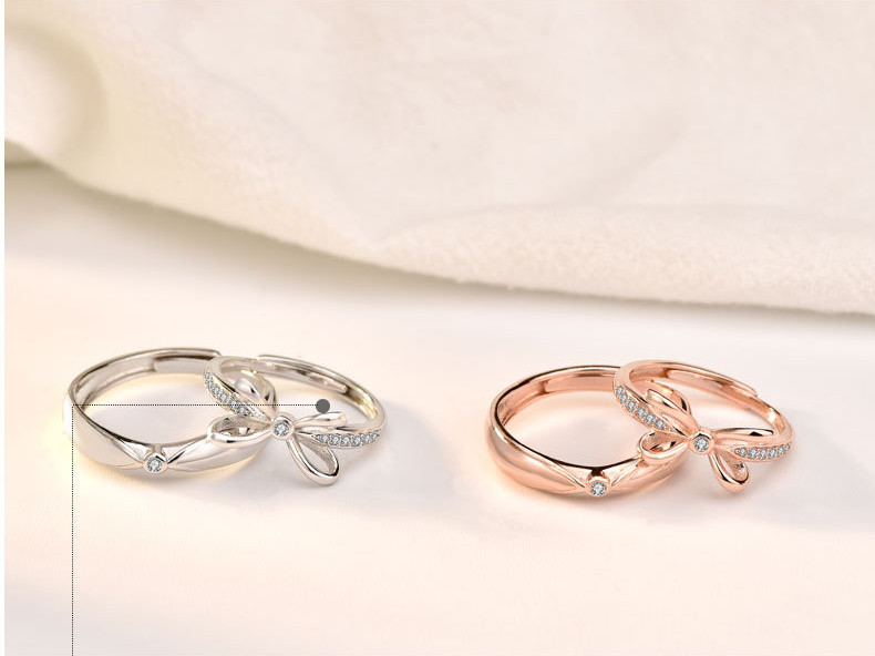 Sterling Silver Bow Couple Rings Adjustable Opening Ring Fine Polishing Holiday Gift For Lovers Gift Ideas Now