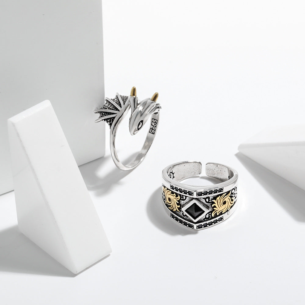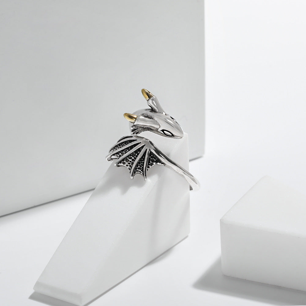 Copper Ring With Flying Dragon Design Vintage Retro Electroplated Fashion Jewelry For Women For Modern Fashion