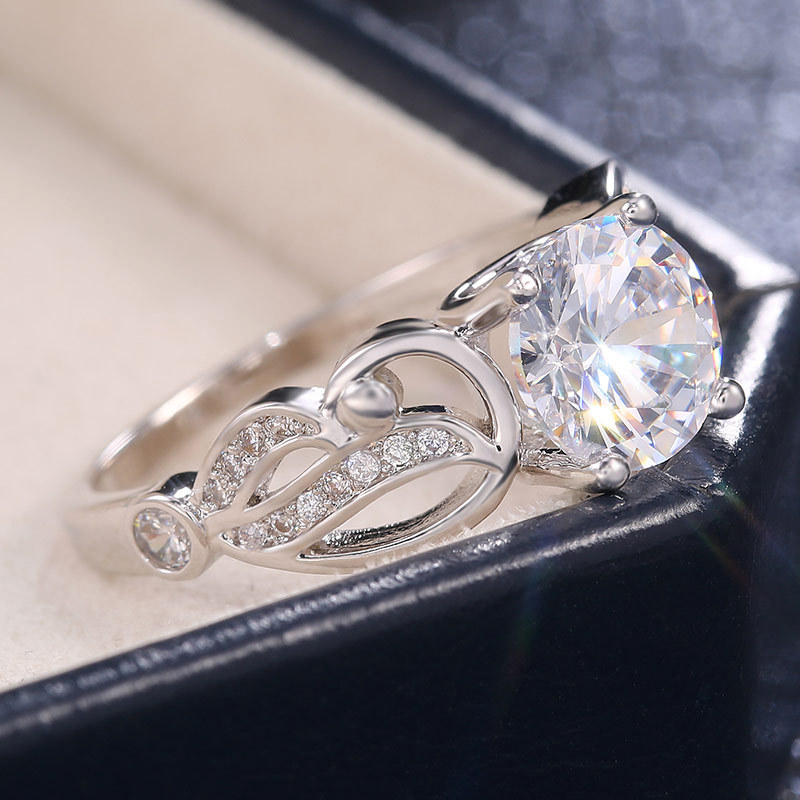 Openwork Claw Ring With White Zircon Stone Copper Plated Silver Fashion Jewelry Gift For Her Elegant Accessory