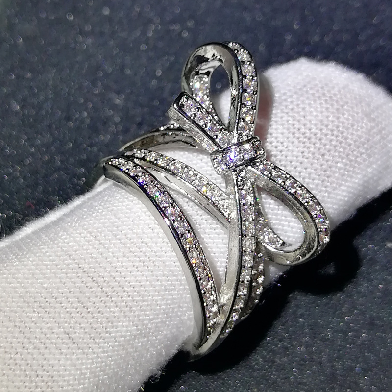 Butterfly Zircon Inlaid Ring Brass Plated Elegant Sparkling Jewelry For Engagement Gift No 6 7 8 9 10 SemiPrec