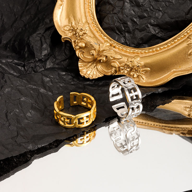 Womens Copper Cross Ring Adjustable Geometric Ring Platinum Or Gold Electroplated Finish Trendy For Everyday Style
