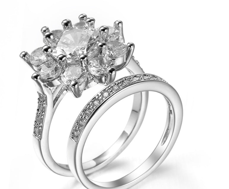 Unisex Zircon Ring Geometric Design Copper Plated Platinum White Gold Inlay Fashion Jewelry Everyday Wear Accessory