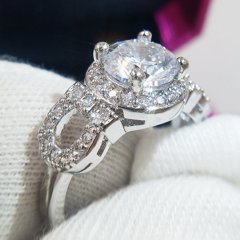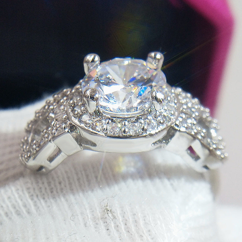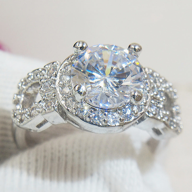 Womens Zircon Ring Inlaid Brass Plated Platinum Jewelry European American Fashion Elegant Style Elegant Design