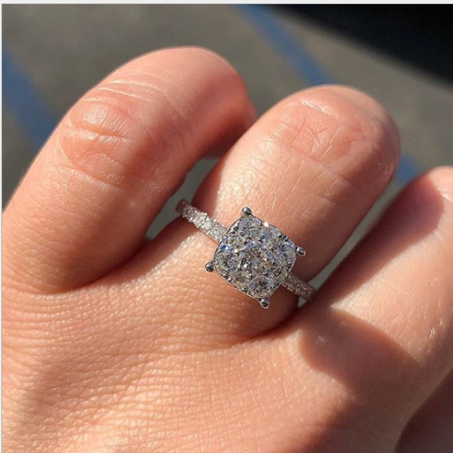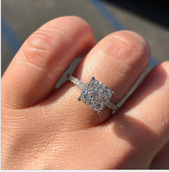 Womens Square White Gold Ring Inlaid With Artificial Gemstones Jewelry Gift For Her Elegant Sparkle For Everyday