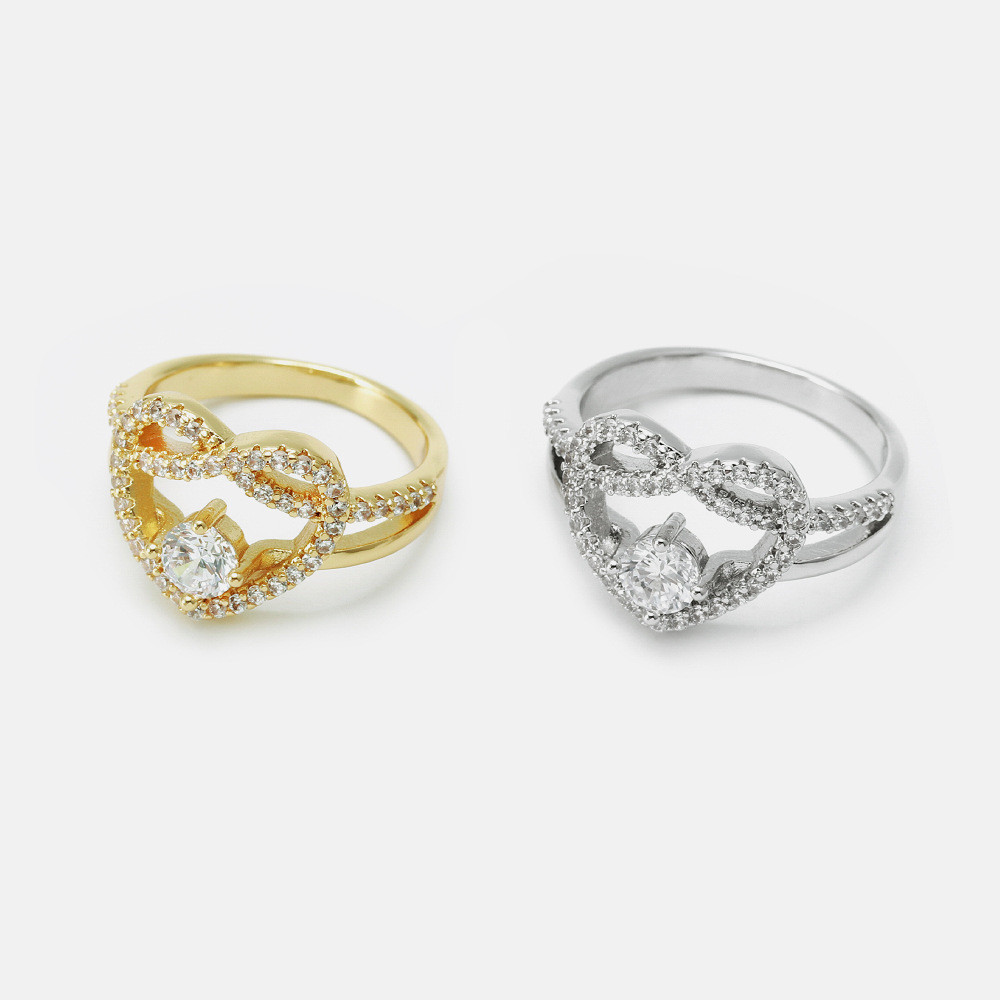 Womens Heart Ring Copper Electroplated Retro Jewelry With White Zircon Love And Promise Ring Gold Plated Shine