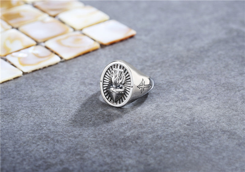 Titanium Steel Cross Heart Ring For Men And Women Retro Design Fashion Jewelry Durable Wedding Band Engagement