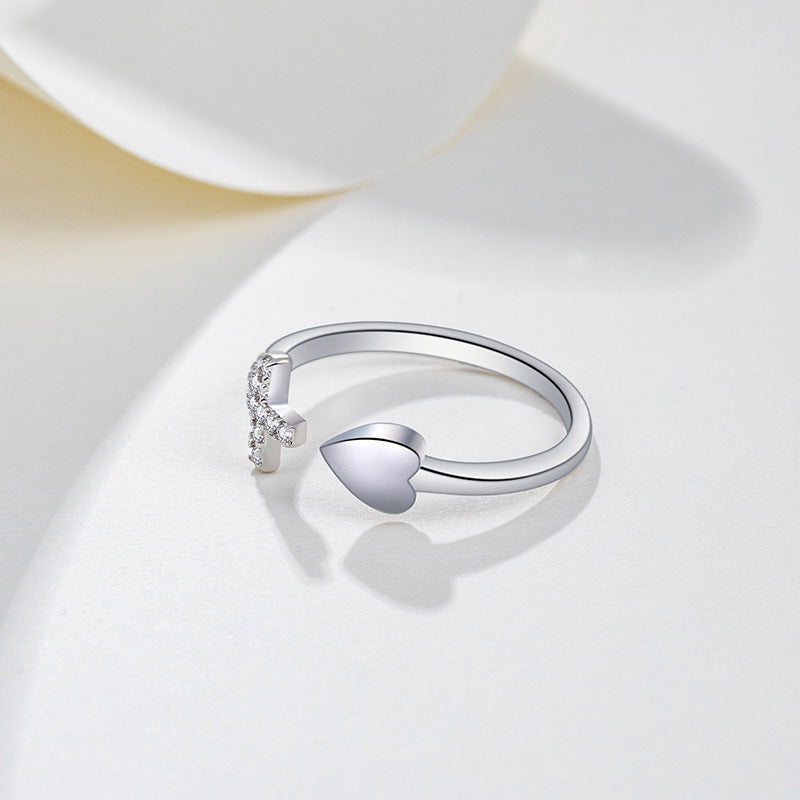 Womens Ring Heart Shaped Cross Design Copper Alloy Electroplated Elegant Anniversary Gift Wear Durable Jewelry
