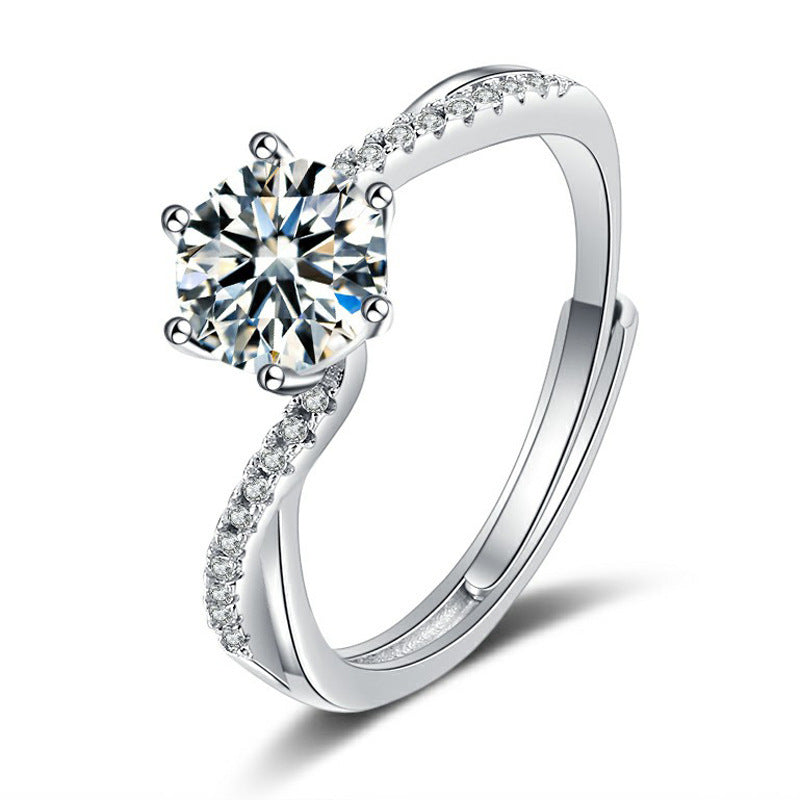 Womens 925 Sterling Silver Ring Geometric Design With Simulated Diamond Six Prong Adjustable Electroplated Ring