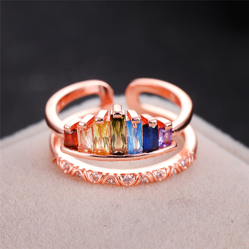 Womens Crown Ring Adjustable Copper Index Finger Ring With Gem Inlay Wedding Birthday Travel Gift Gold Jewelry