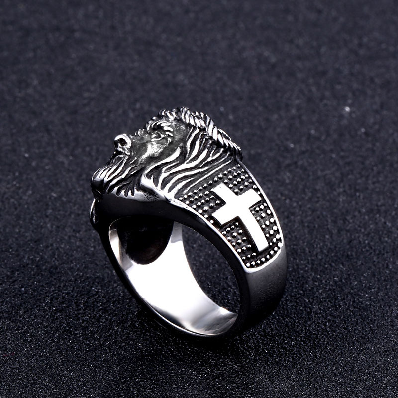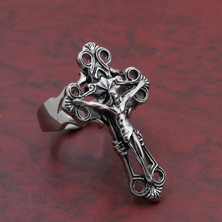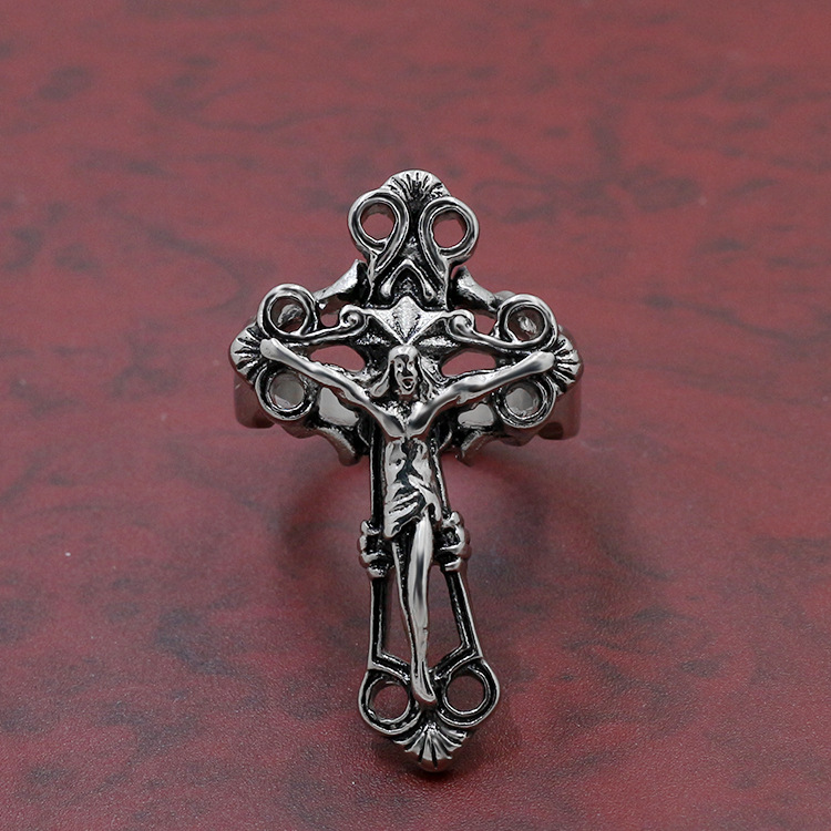 Vintage Engraved Titanium Steel Crucifix Ring for Men