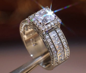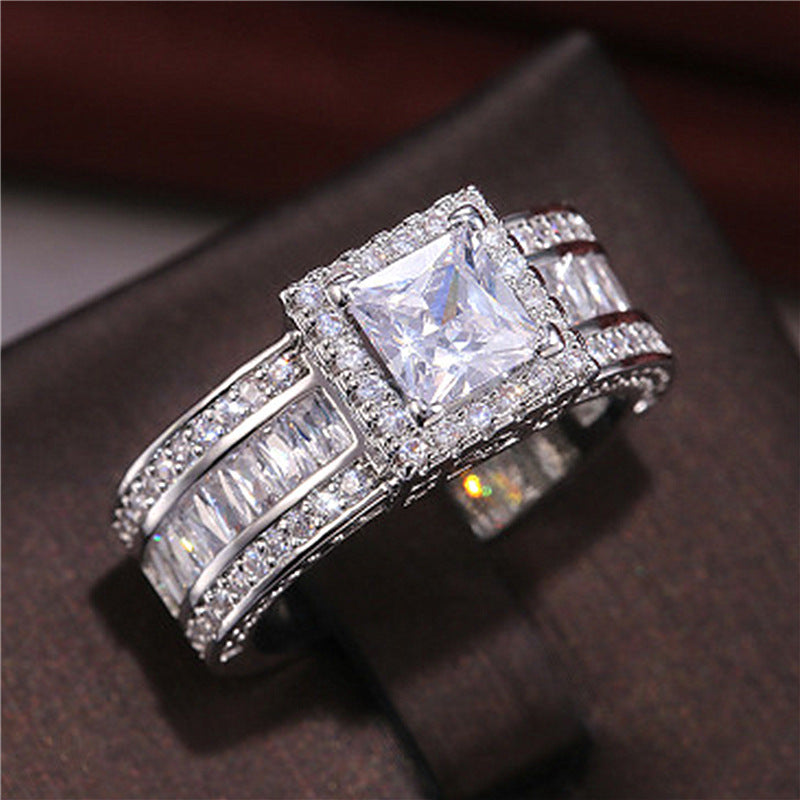 Unisex Cubic Zirconia Ring Square White Gold Plated