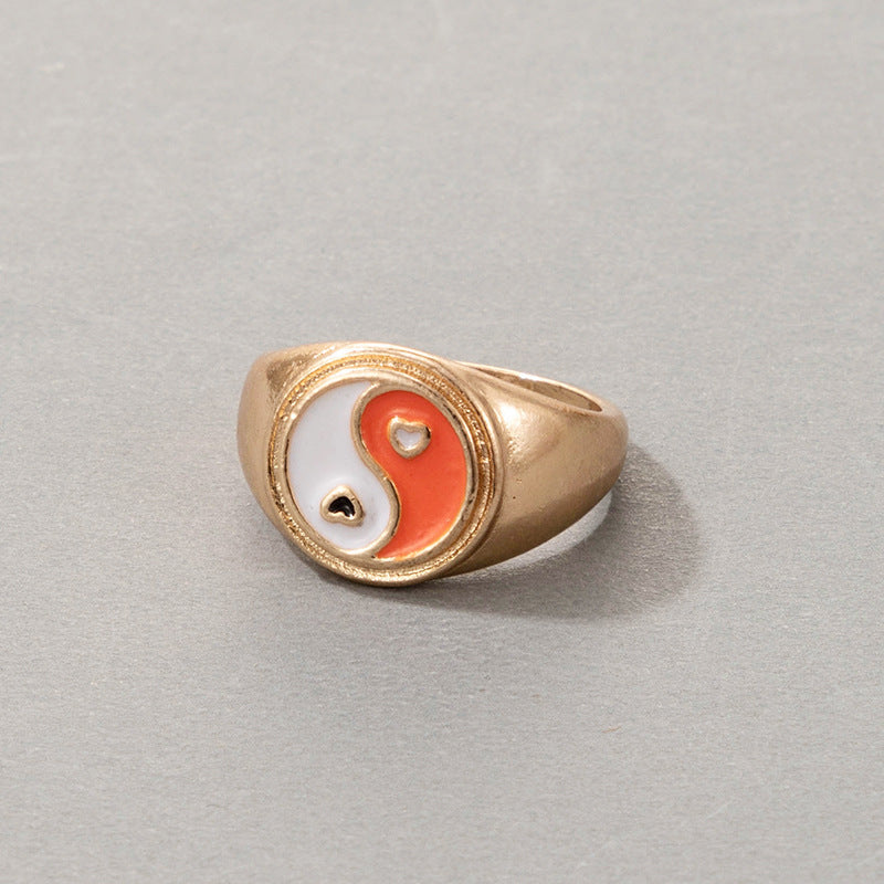 Bohemian Cartoon Ring Dripping Oil Alloy Heart Shaped Ring With Floral Daisy Or And Rainbow Elements For Women
