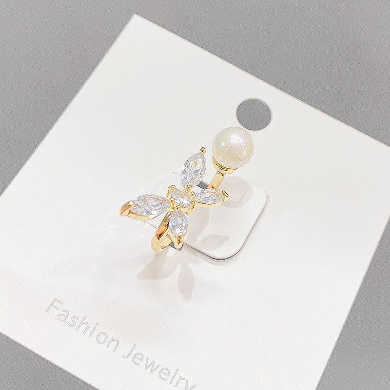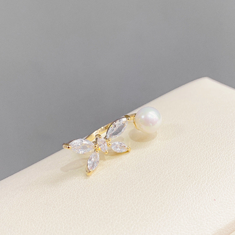 Womens Heart Design Flower Pattern Copper Ring Electroplated Fashion Jewelry Index Finger Durable Elegant Trend