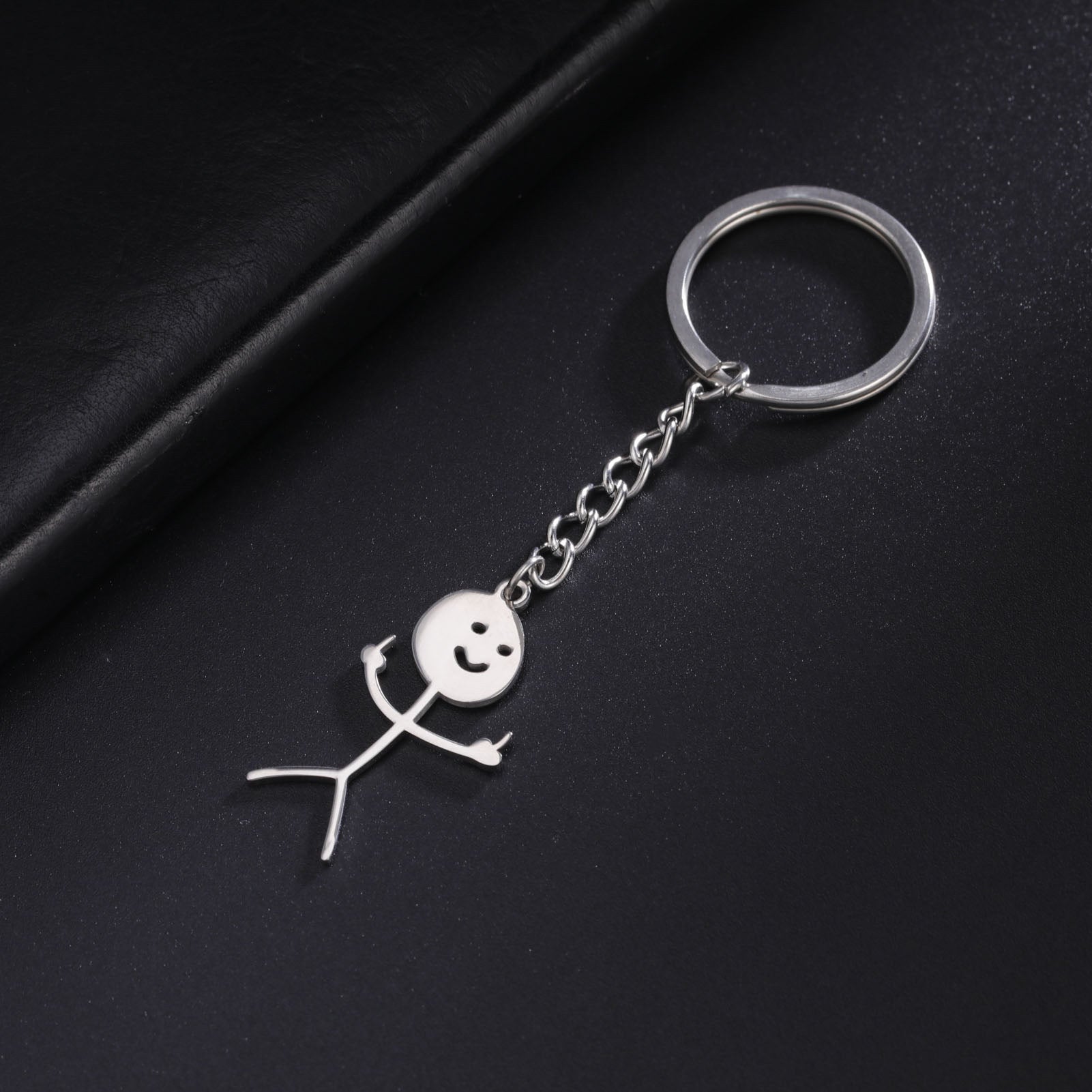Womens Keychain Pro Cute Smiling Face Figurine Pendant Stainless Steel Accessory Korean Fashion Key Ring Charm
