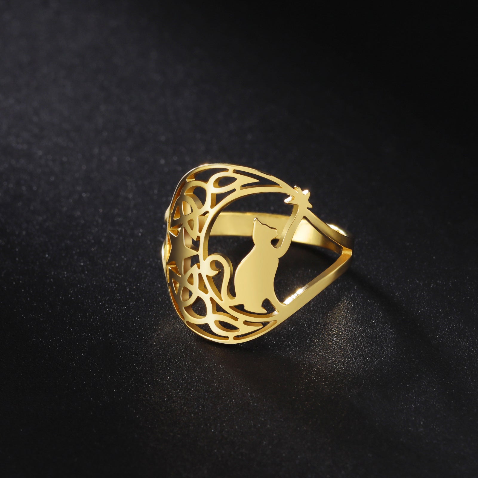 Unisex Stainless Steel Kitten Ring With Star Knot Design Fashion Jewelry Electroplated European Style Ring Accessory