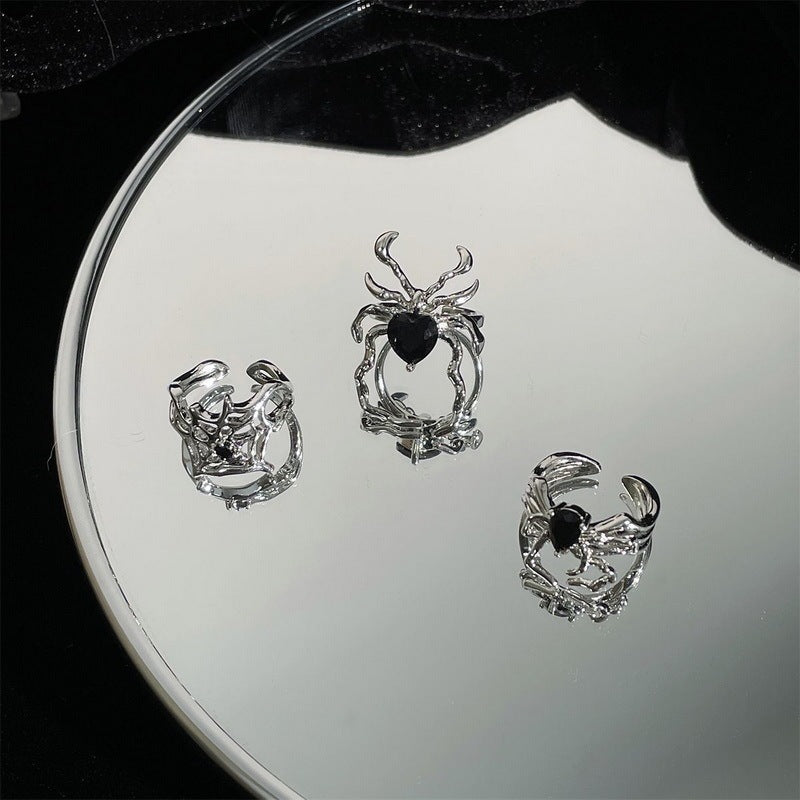 Unisex Adjustable Ring Dark Gem Diamond Spider Web Design Alloy Zodiac Ring for Women and Girls Elegant Everyday Wear