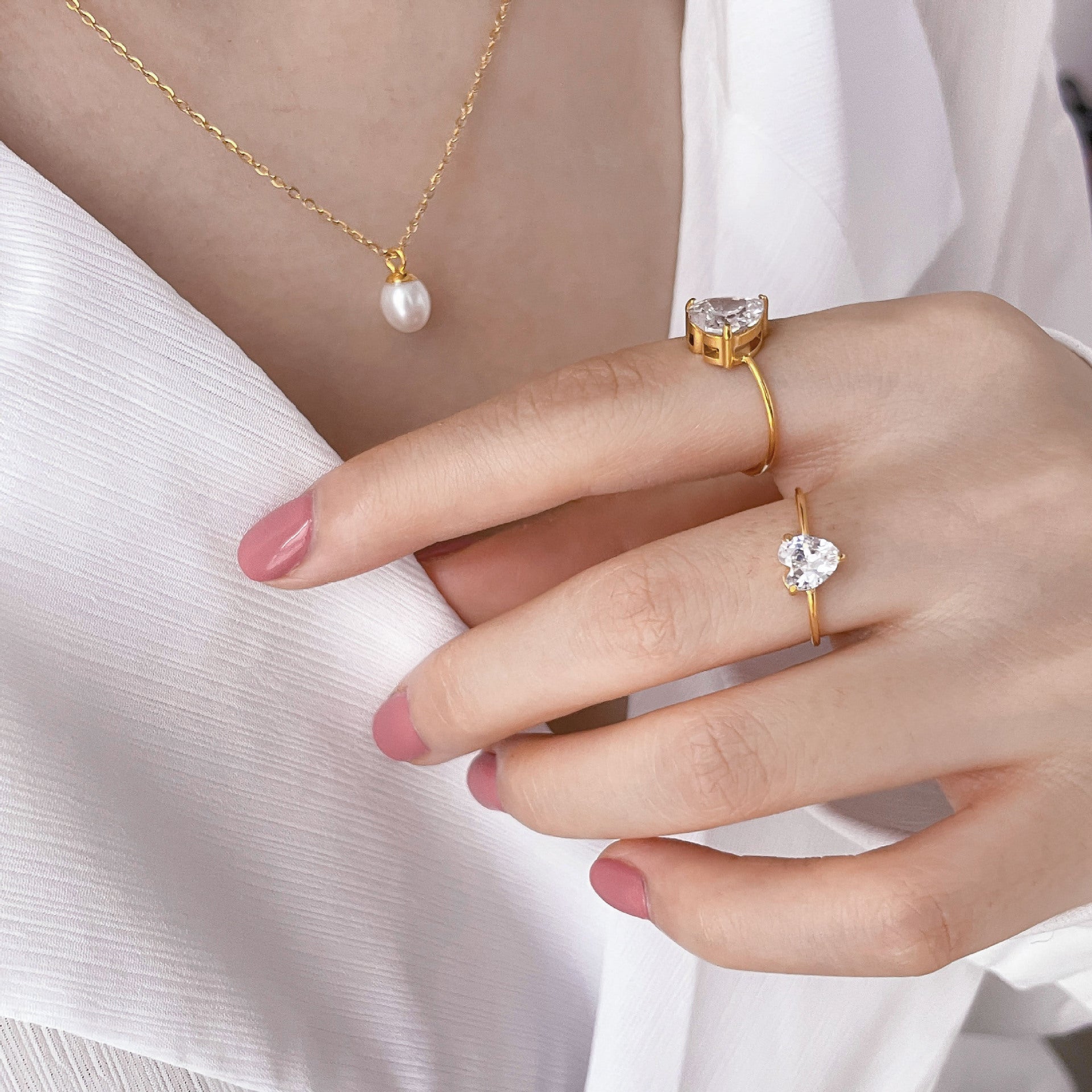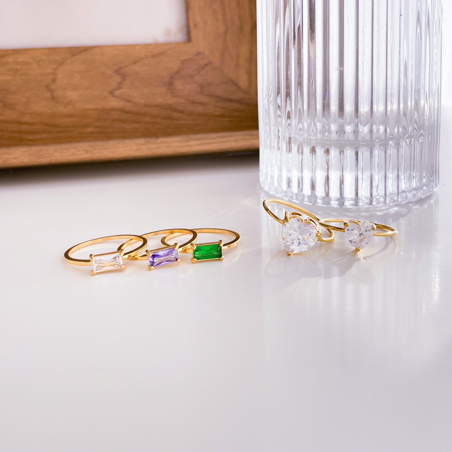 Womens Zircon Ring Titanium Steel Index Finger Geometric Inlaid Purple Green Square Electroplated Fashion Ring