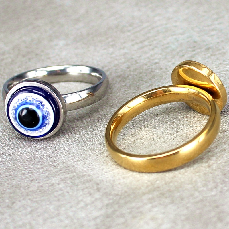 Unisex Titanium Steel Ring Angel Eye Design Durable Wear Resistant Vacuum Plated Fashion Jewelry Gold Tone Lux