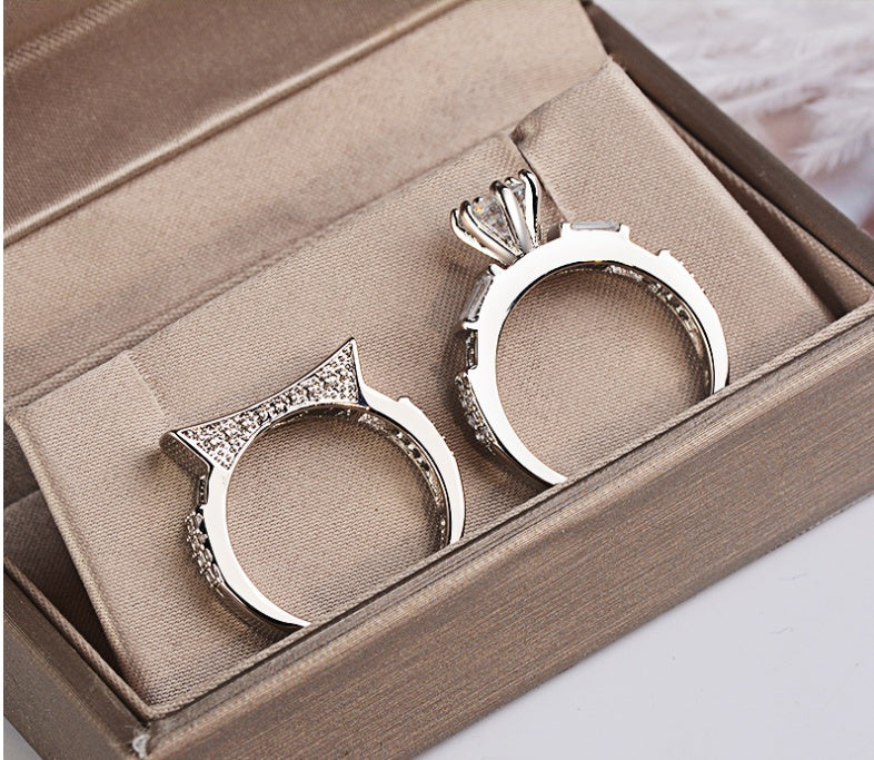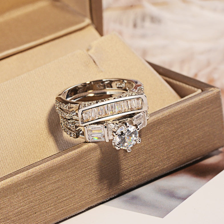 Diamond Studded Ring Sterling Silver White Gold Tone Geometric Design For Women Anniversary Gift Mosaic Gemstone