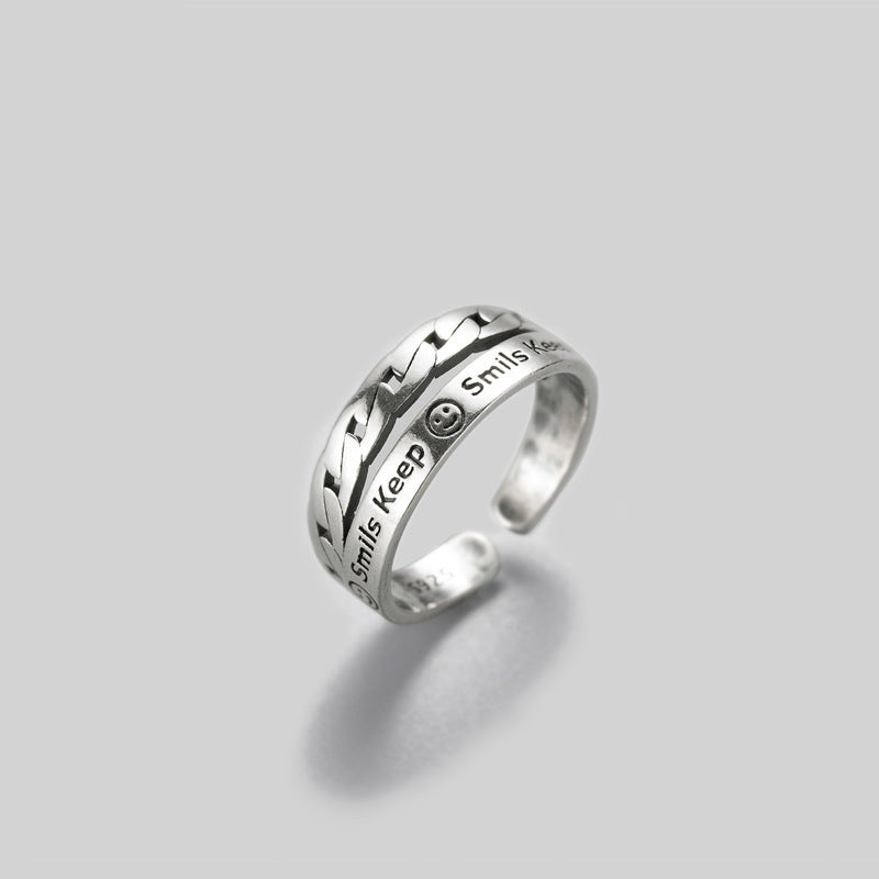 Womens Smiley Face Ring Plated Copper Jewelry Simple Band Ring Double Layer Statement Ring 9mm Wide Fashion Accessory