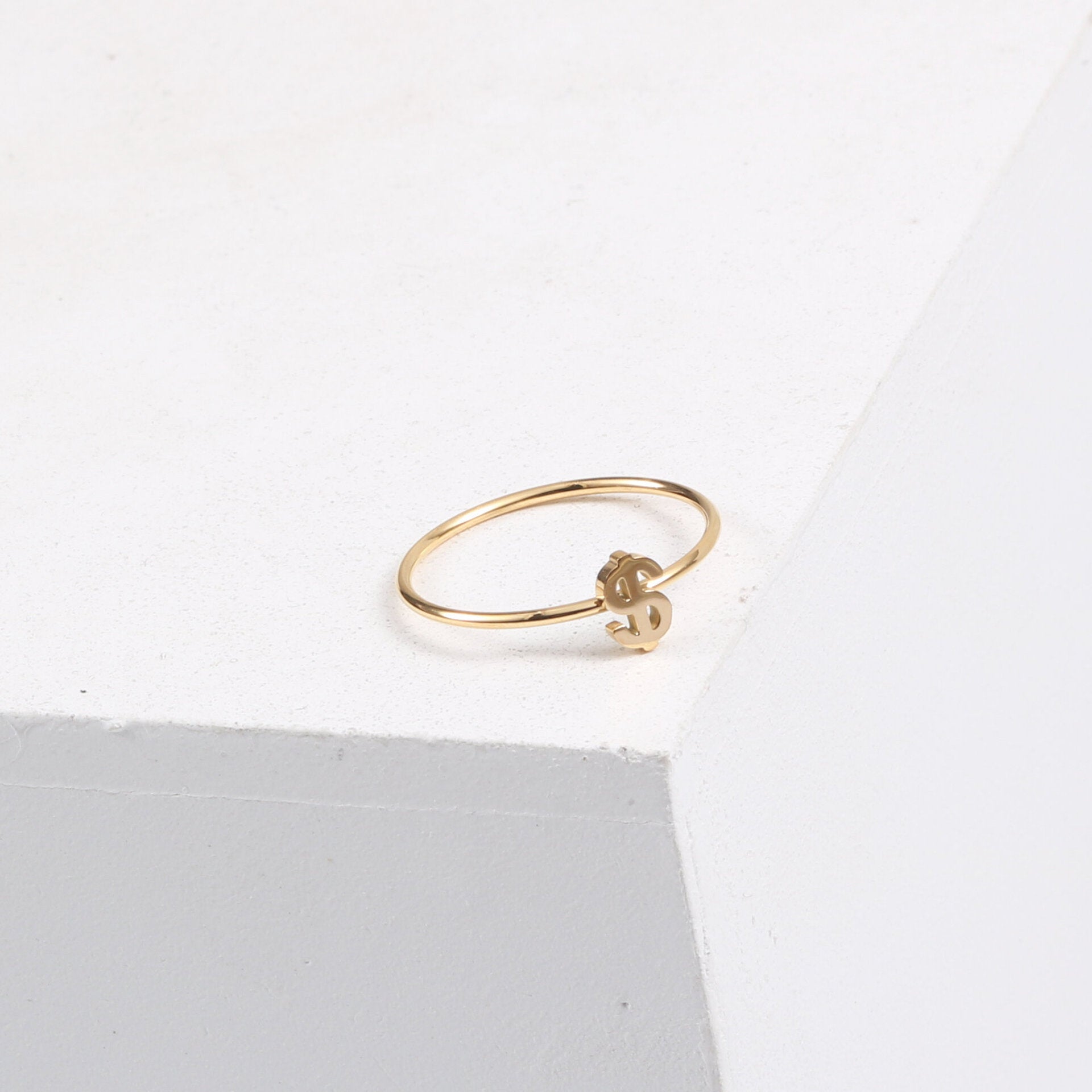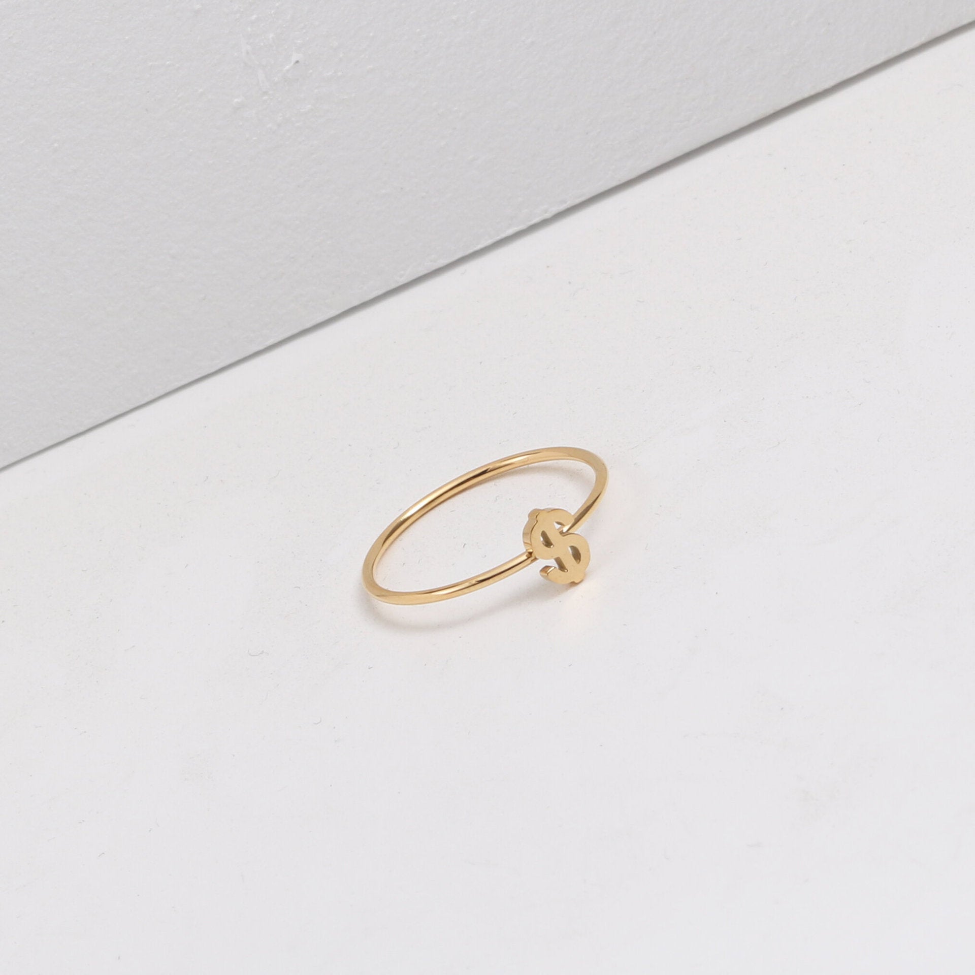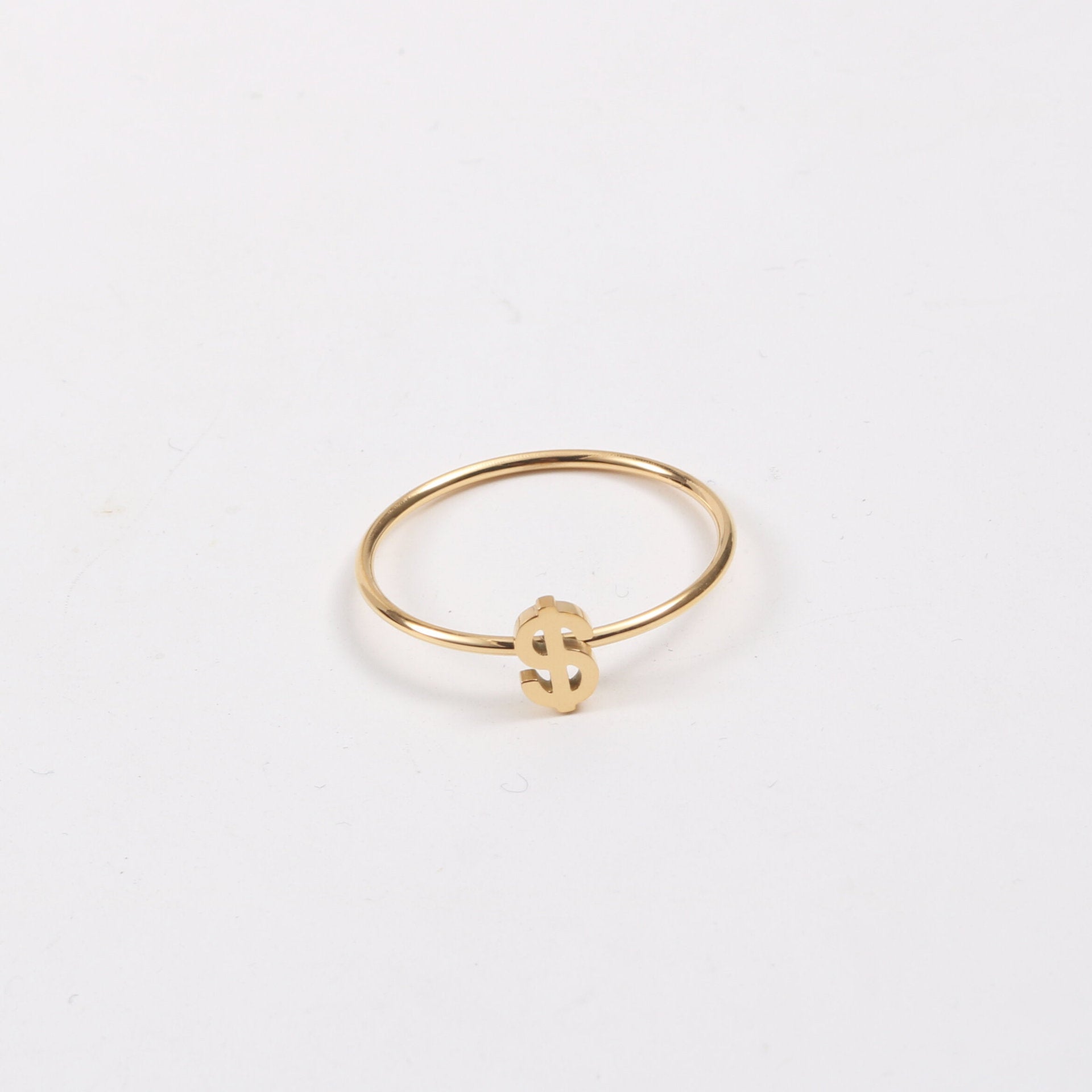 Womens Dollar Symbol Rings Titanium Steel Gold Plated Diamond Cut Fashions Jewellery Durable Elegant Accessory