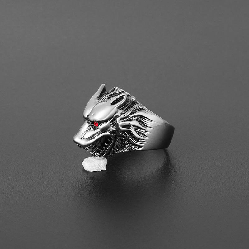 Mens Wolf Head Ring Punk Design Alloy Jewelry Electroplated Durable Statement Gift For Men Everyday Wear Deluxe