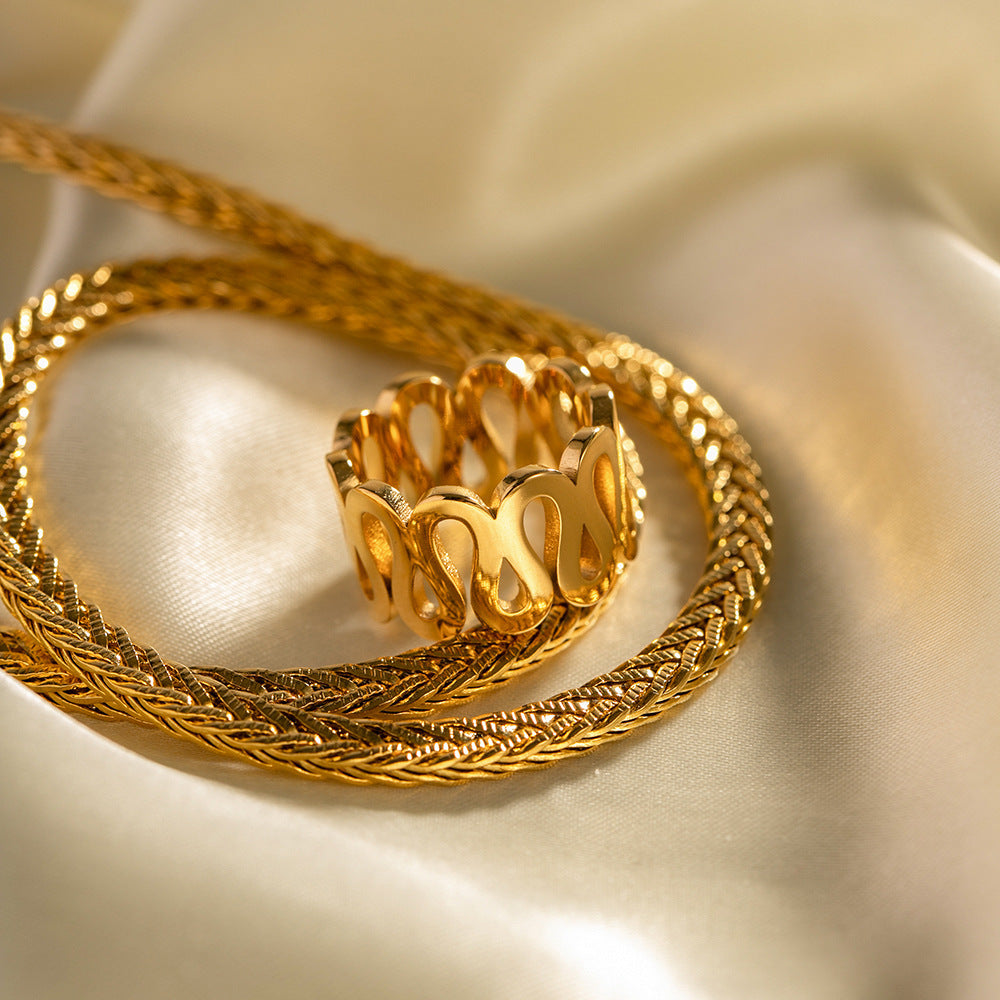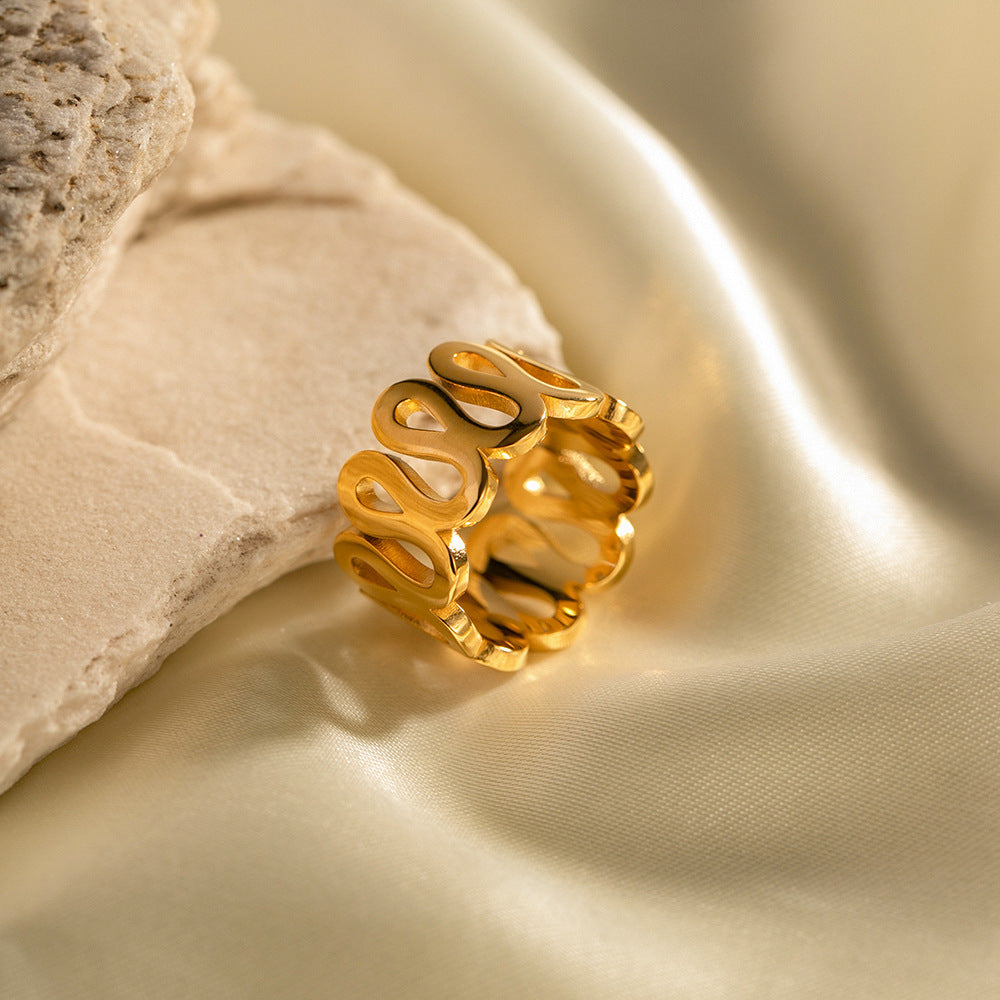 Women's Double 18K Gold Plated Ring Stainless Steel Symmetrical Geometric Ins Style Line Design Ring For Her