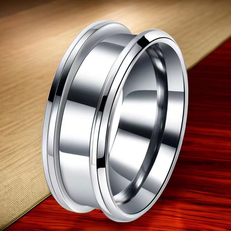 Unisex Ring Double Bevel Grooved Billet Stainless Steel Band Electroplated Geometric Design Ring Ring Band Ring