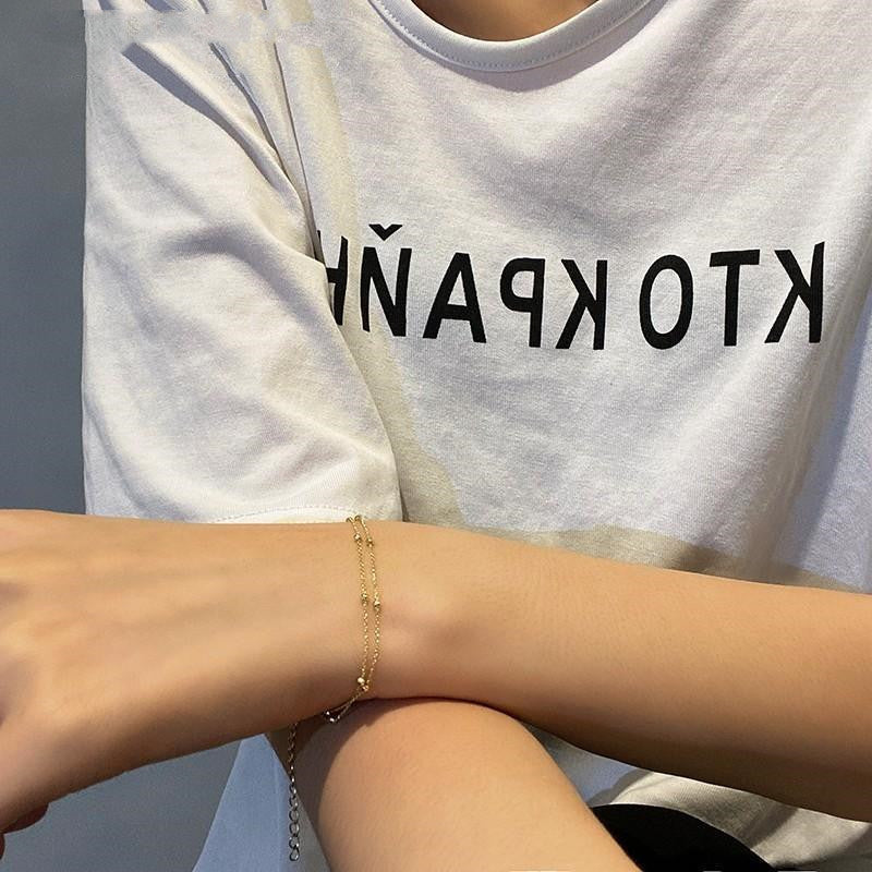 Womens Geometric Double Layer Bracelet With Beads Copper Gold Plating Adjustable Extender Jewelry Gift For Her