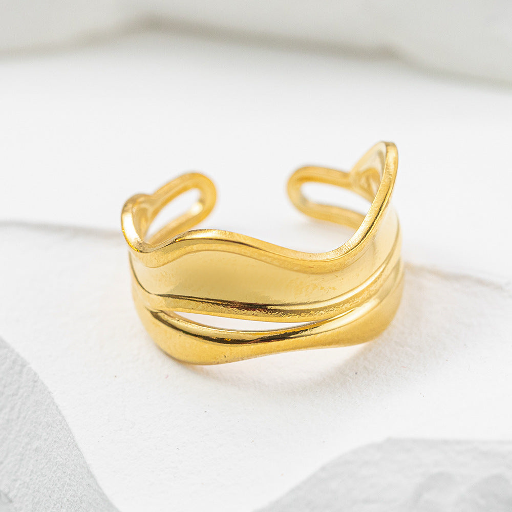 Unisex Titanium Steel Gold Plated Double Layer Cross Ring Geometric Statement Jewelry Men Women Fashion Accessory