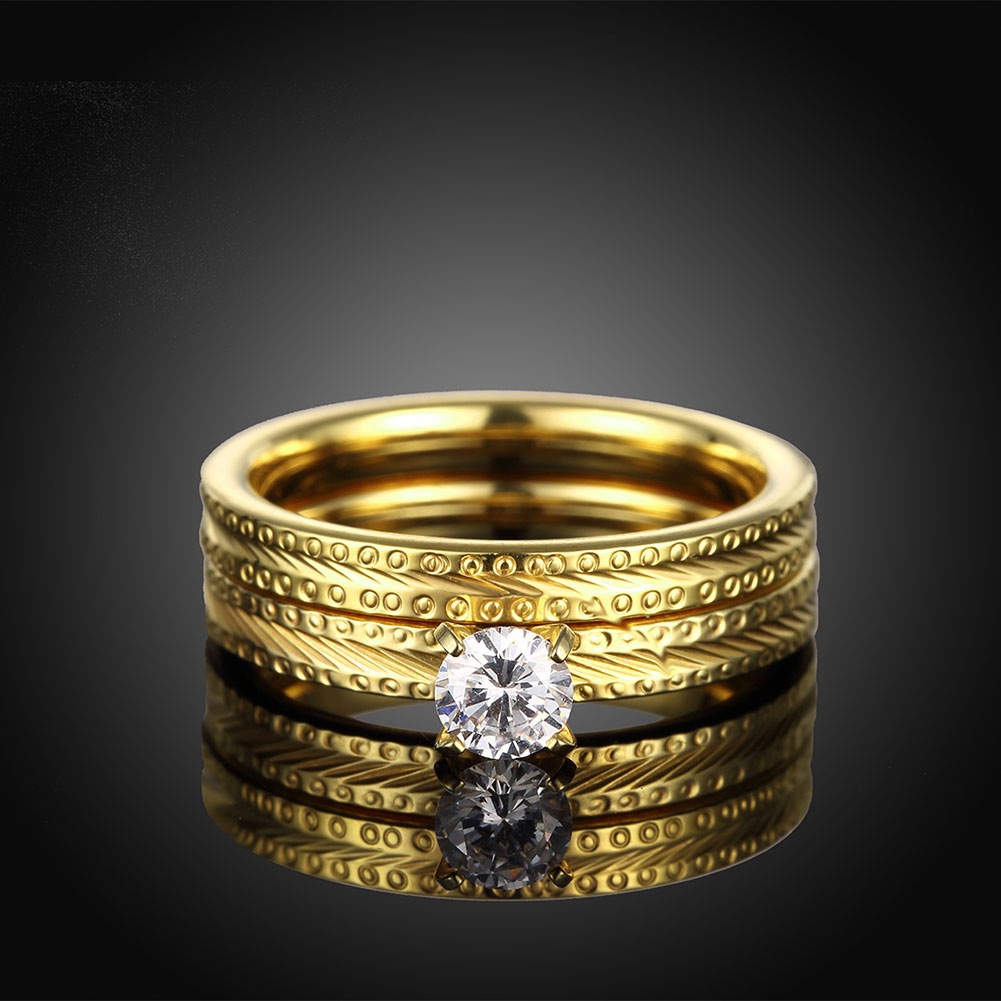 Womens Double Layer Stainless Steel RingSet Detachable Gold Tone Diamond Accented Fashion Jewelry Gift For Her