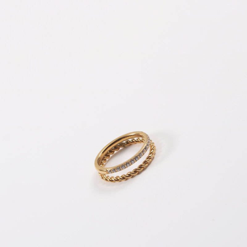 Unisex Double Layer Fried Dough Twists Ring With Zircon Cool Universe Electropltd Size 6 7 8 Packing X1PCS RXPR