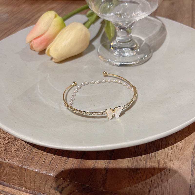 Womens Double Layer Butterfly Bracelet Copper Electroplated Gold Delicate Butterfly Charm Elegant Jewelry Gift For Her