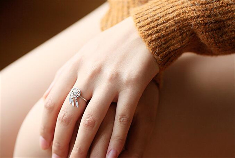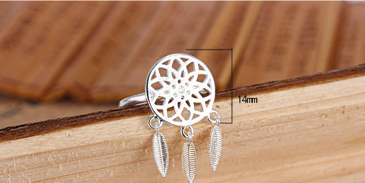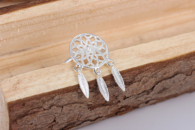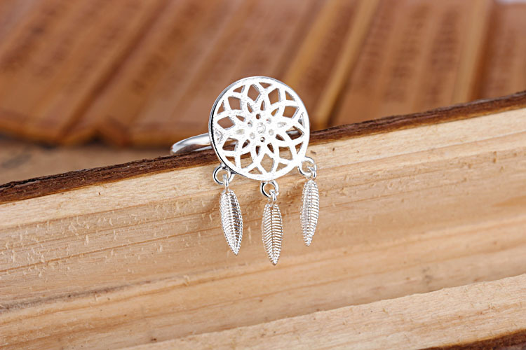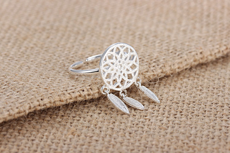 Womens Ring Adjustable Silver Plated Copper Ring With Geometric Dream Catcher Design Fashion Jewelry Gift Idea