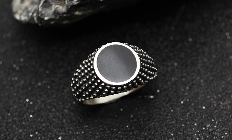 Mens Stainless Steel Ring Dripping Polka Dot Design