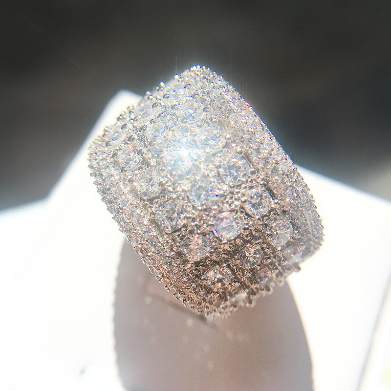 Womens Eight Hearts And Arrows Zircon Ring Copper And White Steel Plated Engagement Gift Jewelry Classic Style