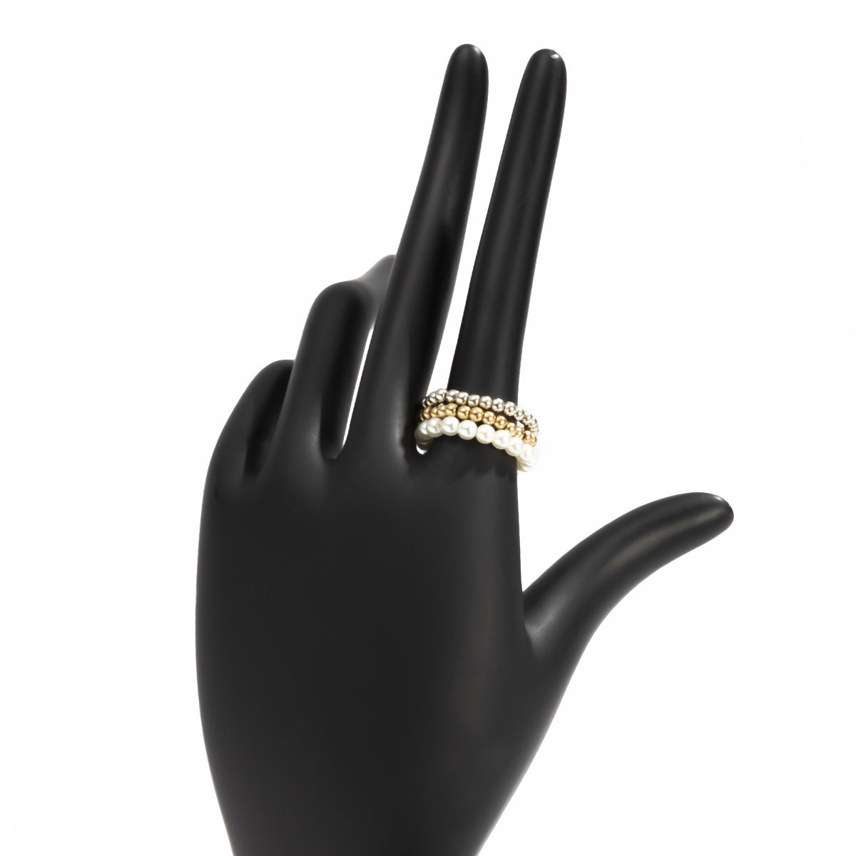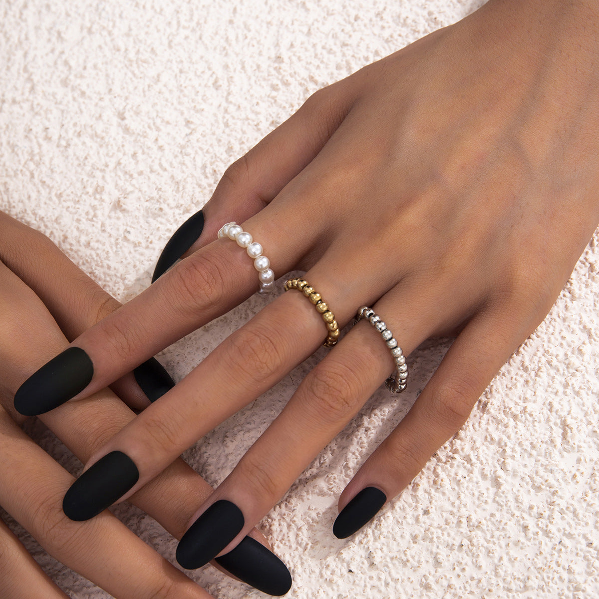 Womens Stacked Ring Set Faux Pearls Bohemian Ethnic Retro Geometrical 3D Decoration Jewelry For Everyday Style