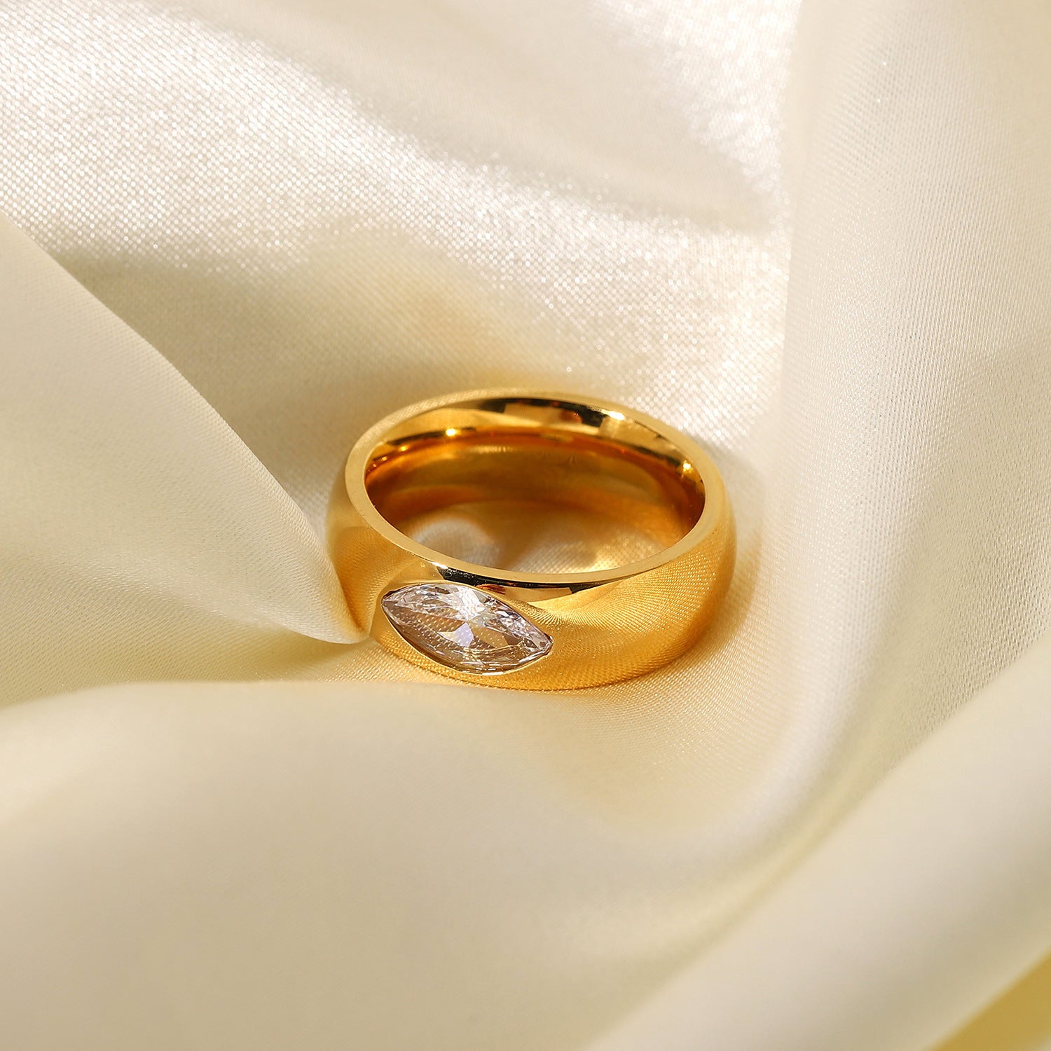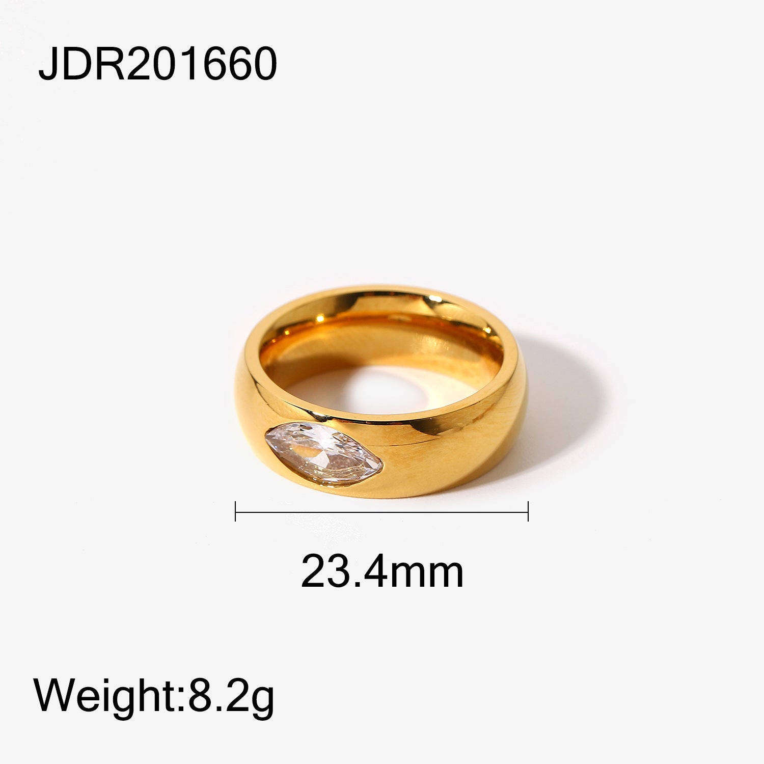 Womens Stainless Steel Ring 18K Gold Electroplated Transparent Rock Sugar Square Diamond Geometric Design Ring