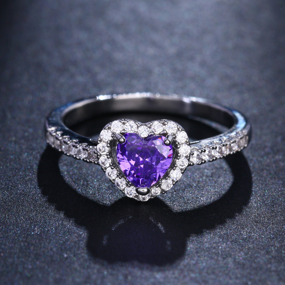 Women's Heart Ring with Emerald Zircon Stone Electroplated Copper Korean Fashion Jewelry Gang Drill Ring for Her Heart Shape Ring Platinum White