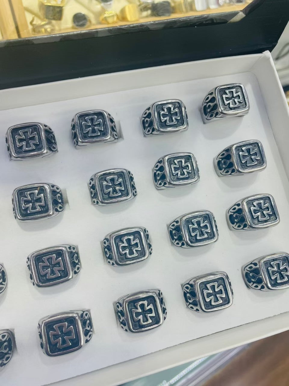 Mens Geometric Ring Electroplated Steel Tone European American Fashion Accessory Durable Modern Statement Band