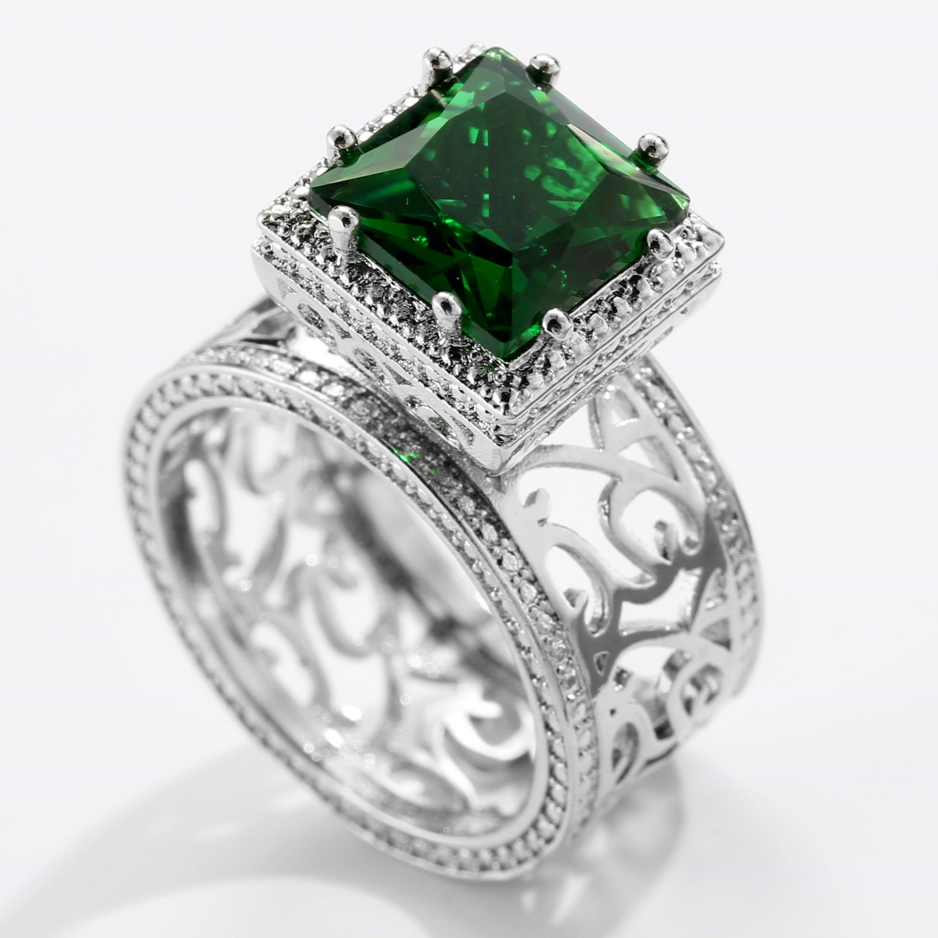 Emerald Green Square Cut Zircon Ring Copper Band Geometric Jewelry For Women Classic Sparkle Everyday Wear Set