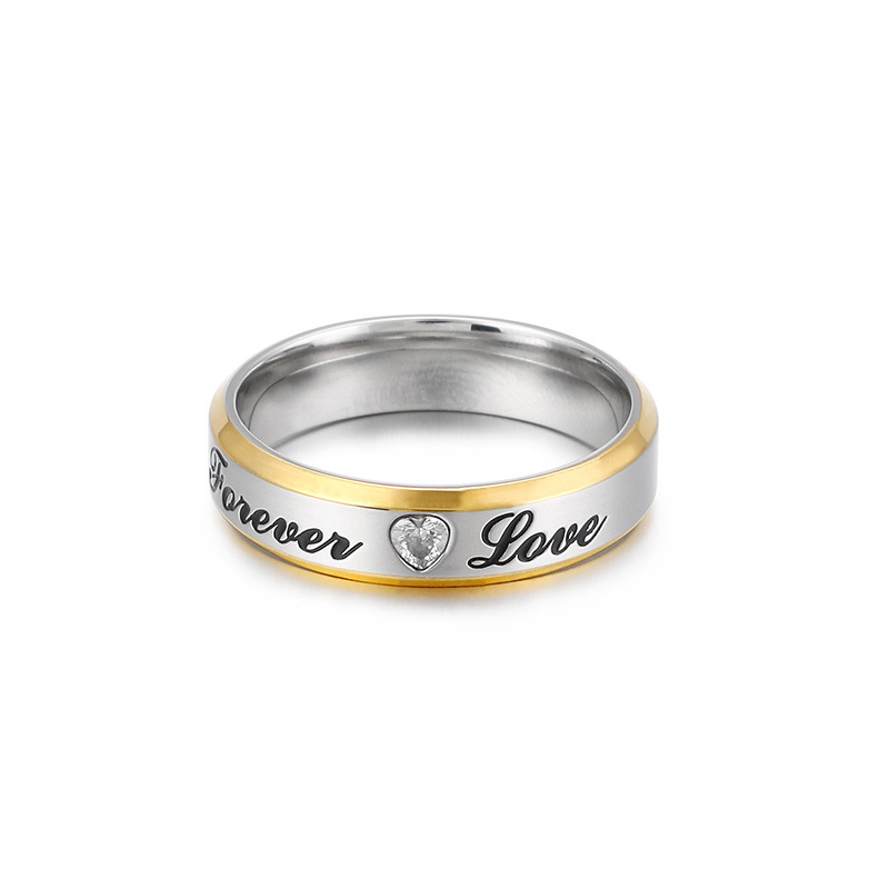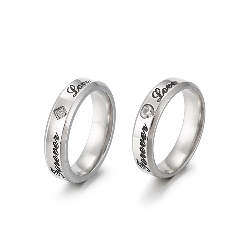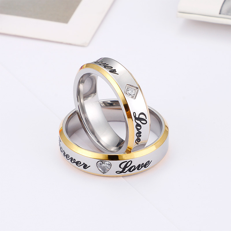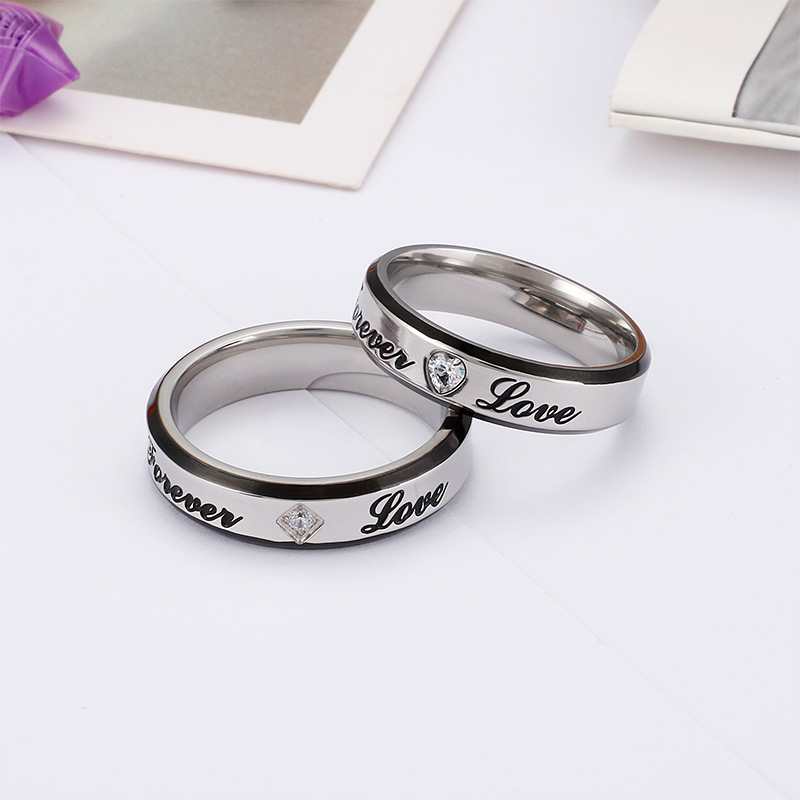 Couple Ring Titanium Steel Heart Shape Forever Love Engagement Anniversary Wedding Band Electroplated Gift Shine Finish