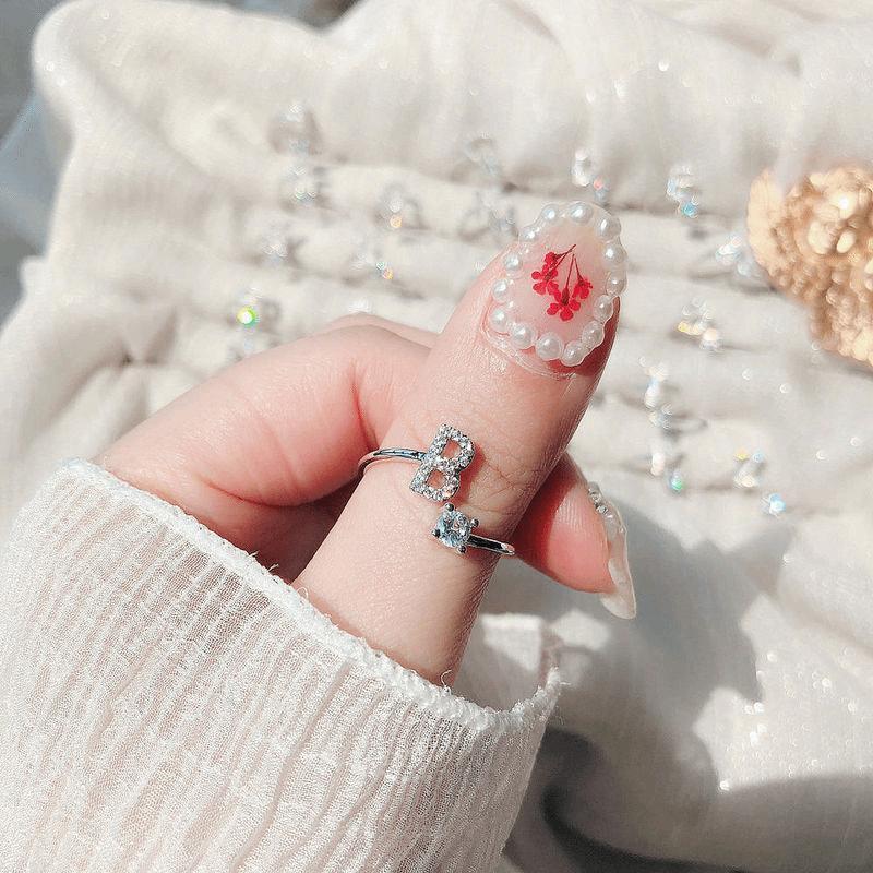 Women's Initial Alphabet Zircon Ring Open Mouth Adjustable Design A to Z Letter Jewelry Gift for Her Gifts for Her
