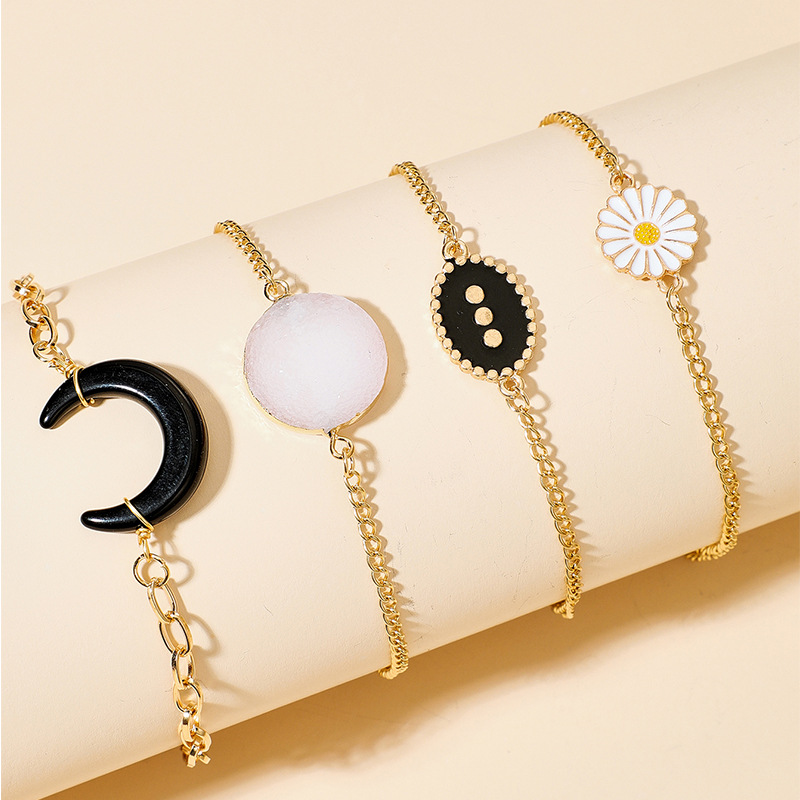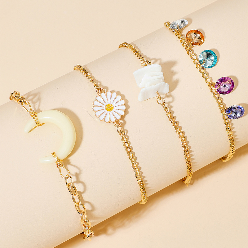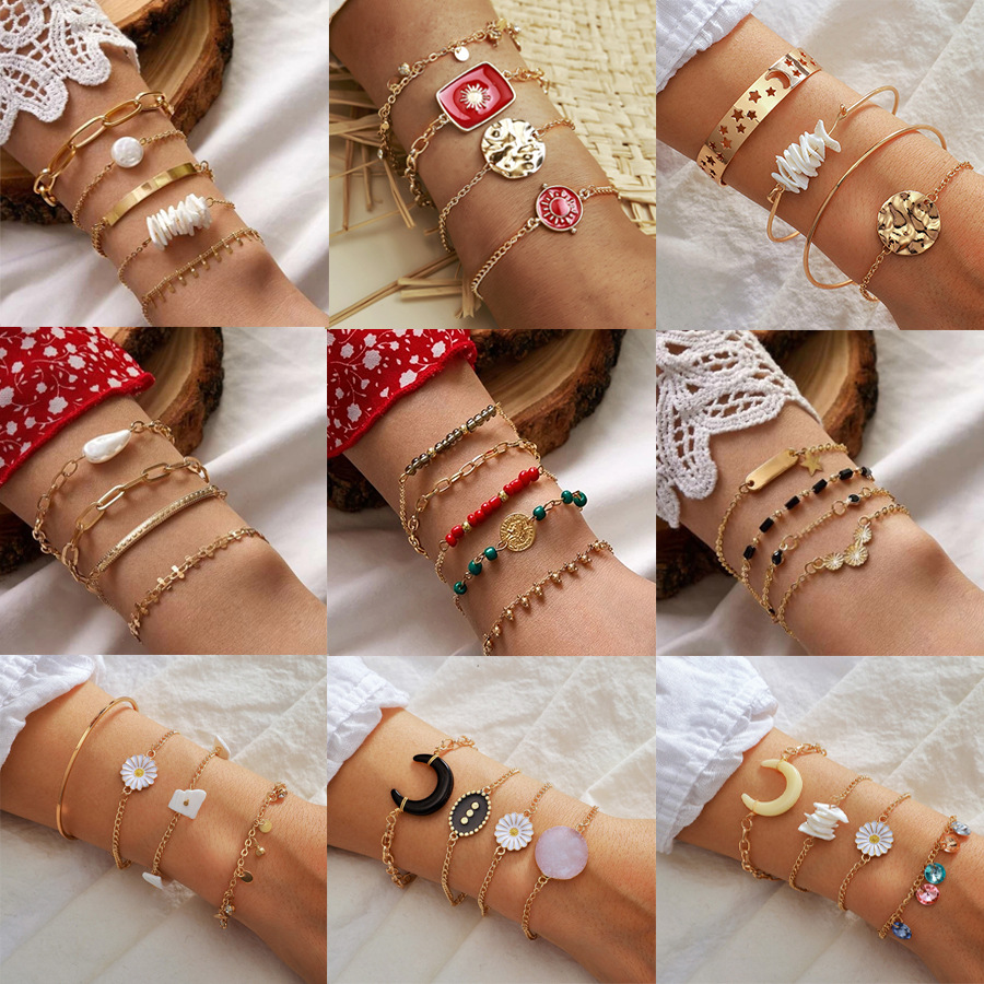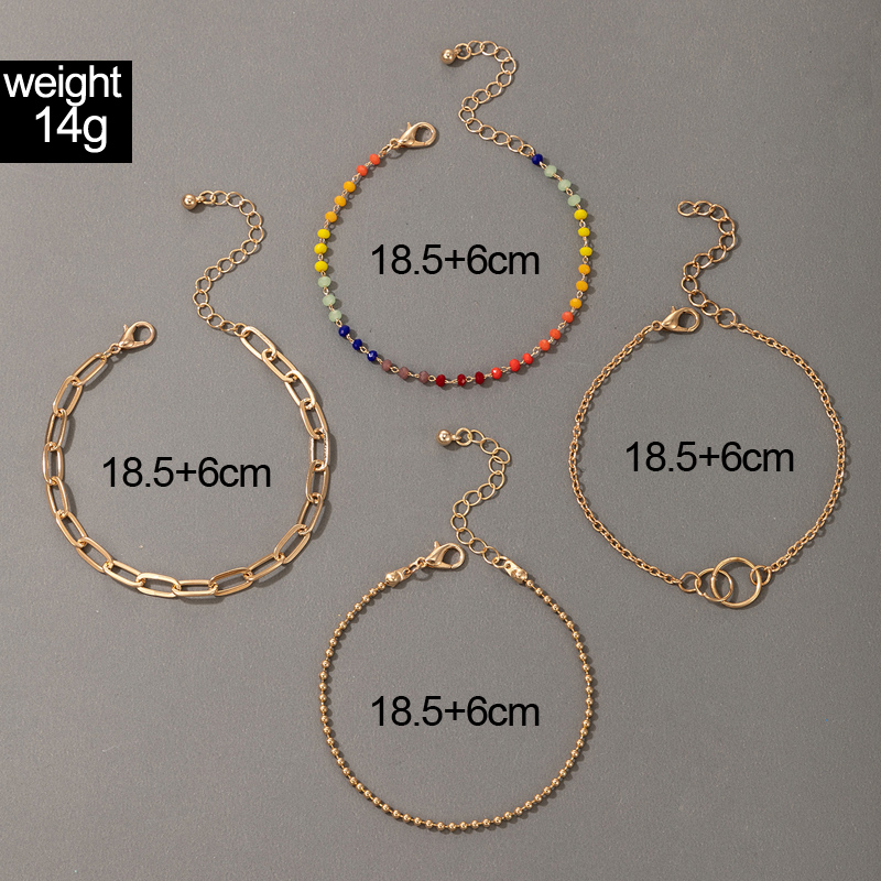 Unisex Geometric Alloy Bracelet Set With Ethnic Rice Beads Electroplated Finish Four Pieces Jewelry Collection