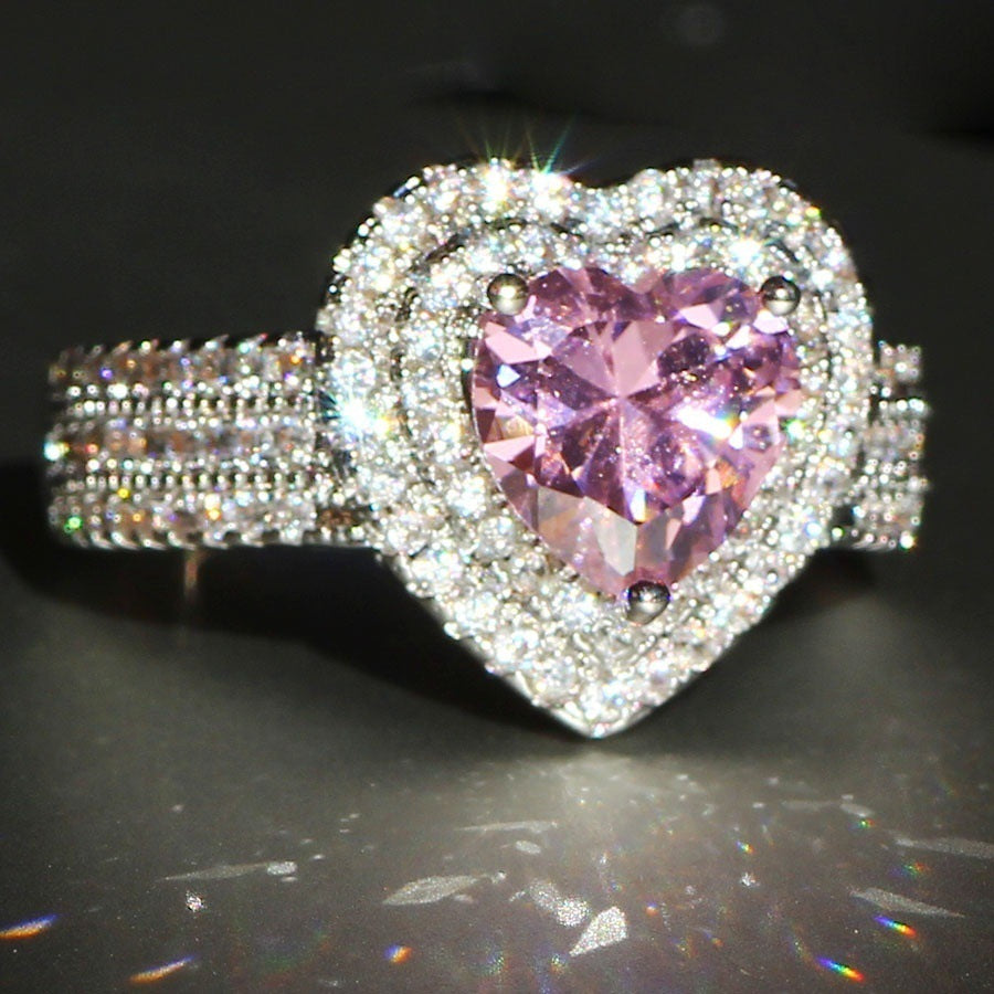 Zircon Love Ring Geometric Gold Plated Statement For Women